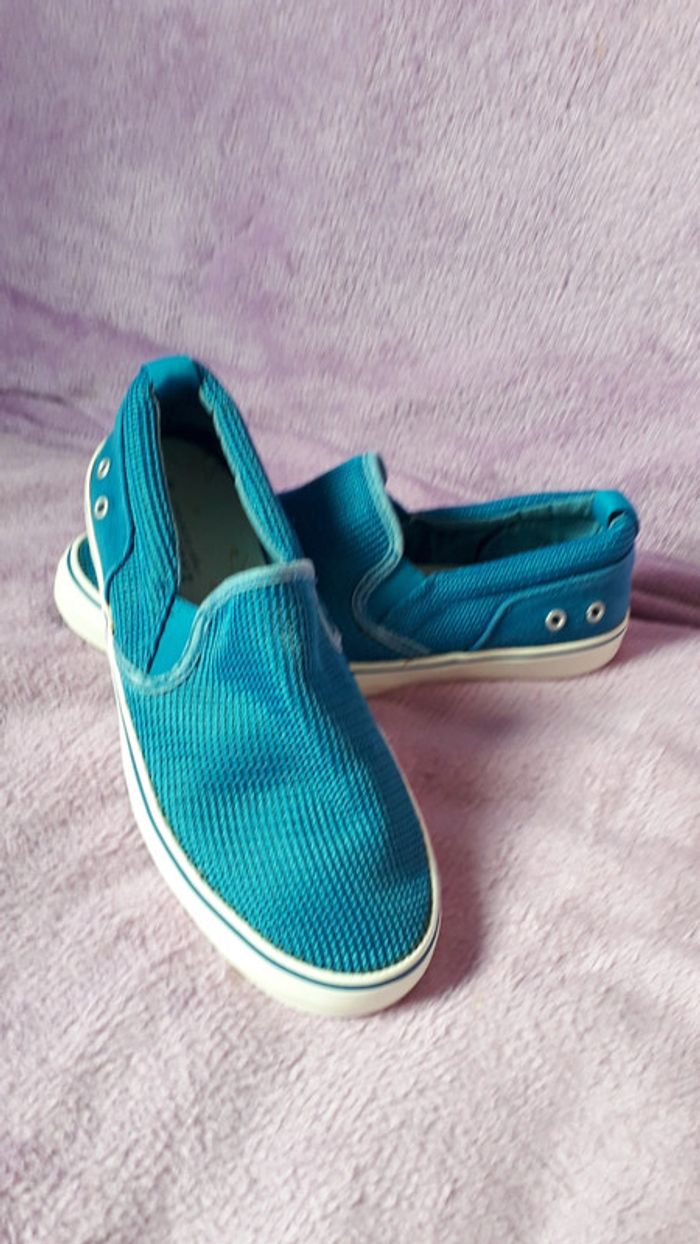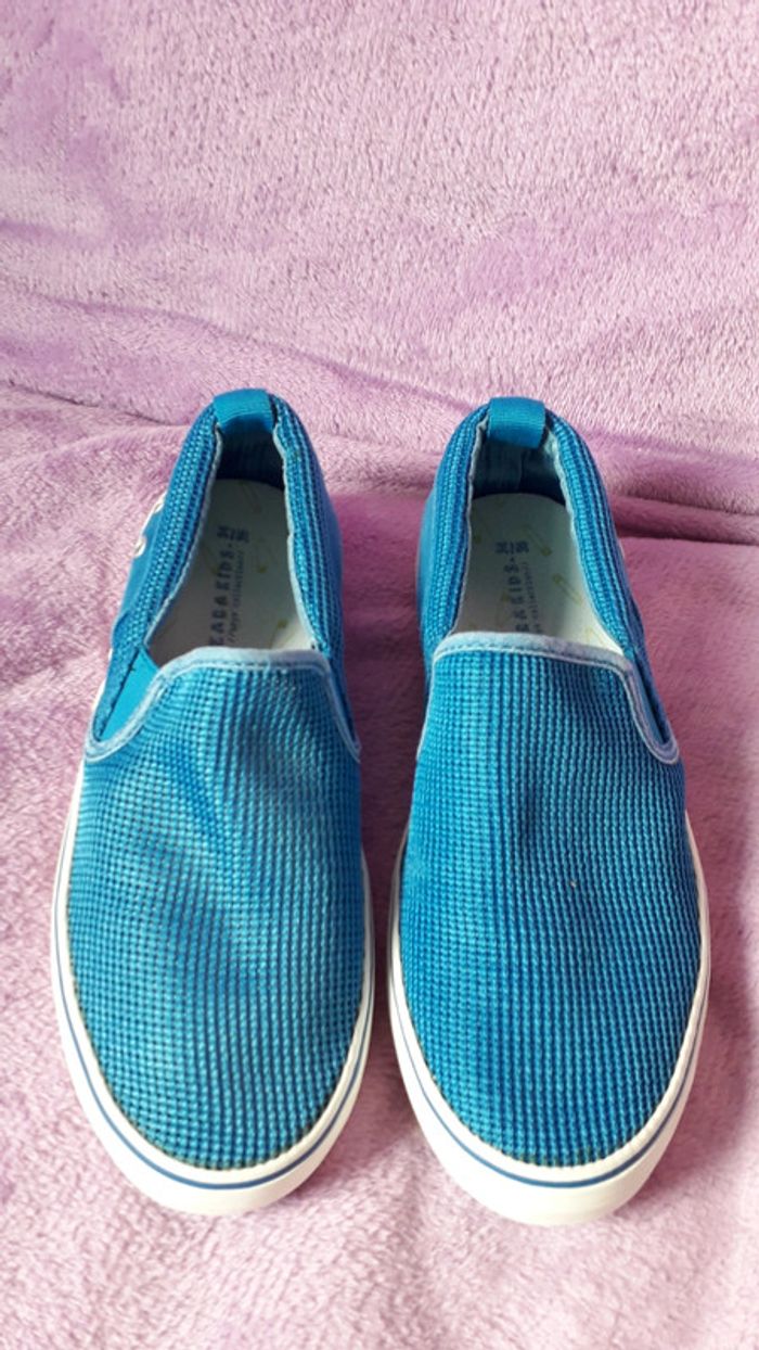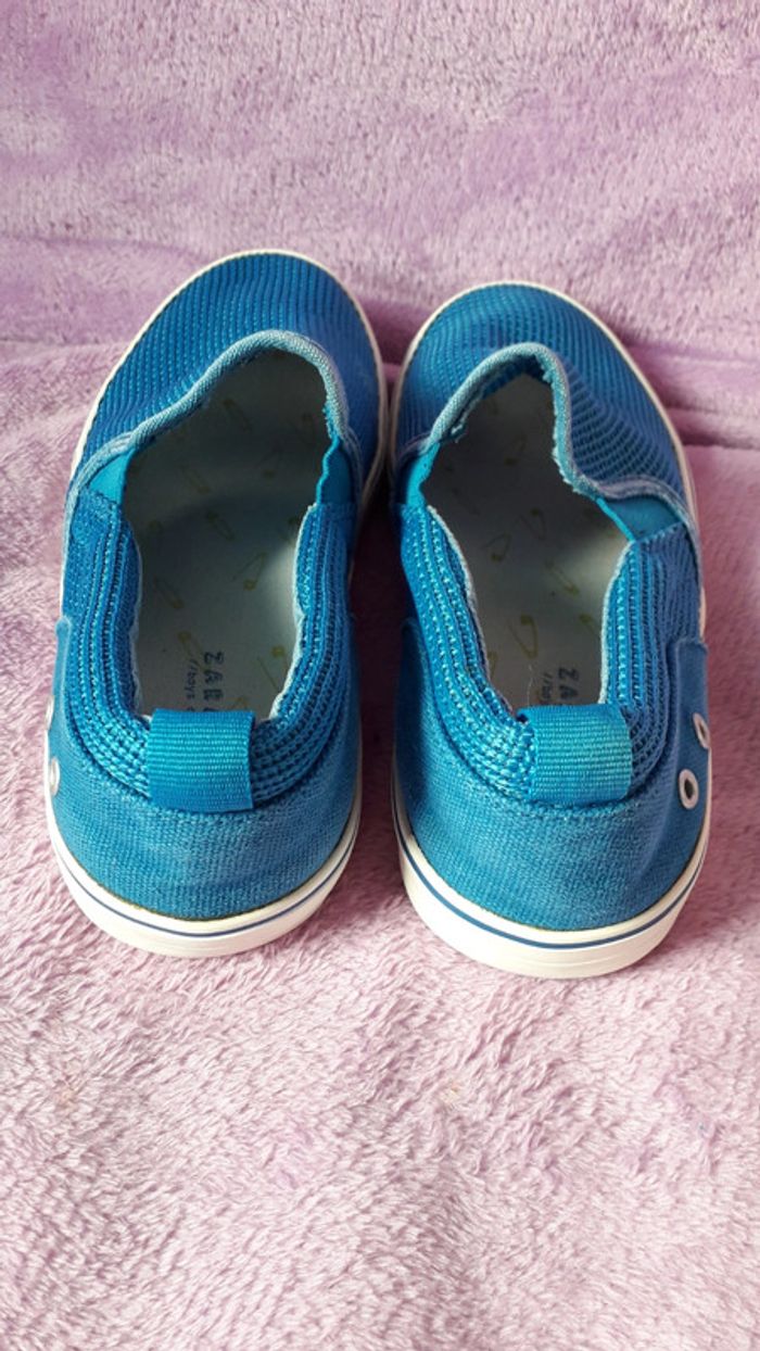 Baskets basses bleu taille 34/35 de la marque Zara. Semelles extérieures un peu usées (cf dernière photo).