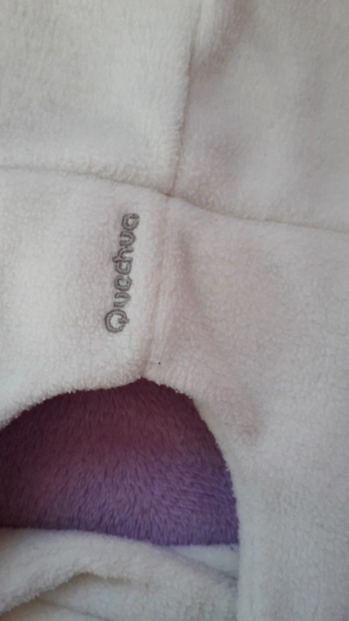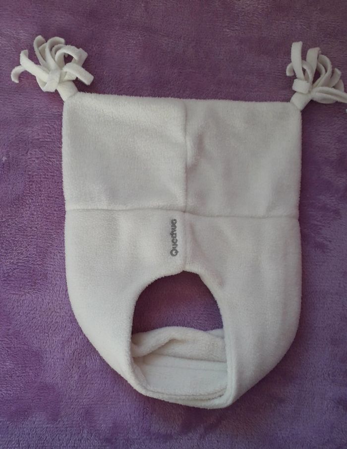 Bonnet blanc de la marque Quechua. Présence de quelques bouloches sur le scratch (cf dernière photo).