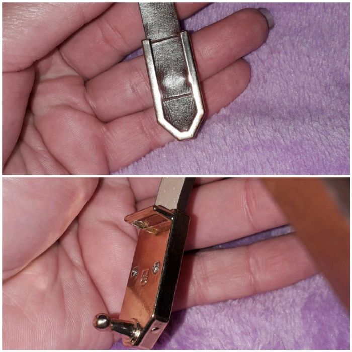 Ceinture fine marron avec boucle dorée. Présence de quelques traces d'usures, très légères ( cf dernière photo).