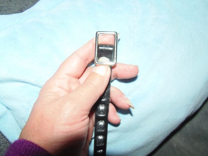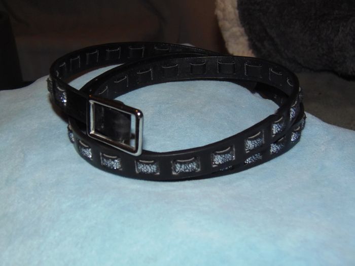 Ceinture fine noire et argentée en parfait état, 93cm, à passant sans attache.