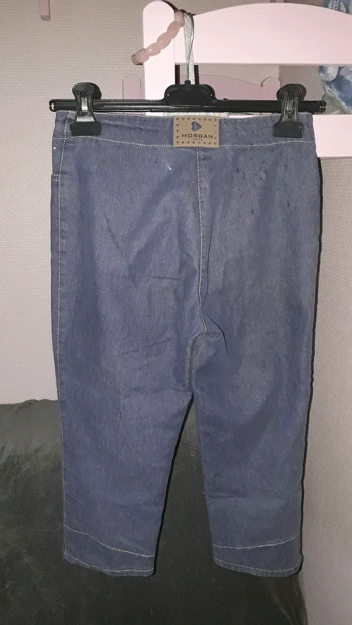 Pantacourt en jean's de la marque Morgan taille 38. Un léger accro derrière sous l'étiquette (cf photo n°3).