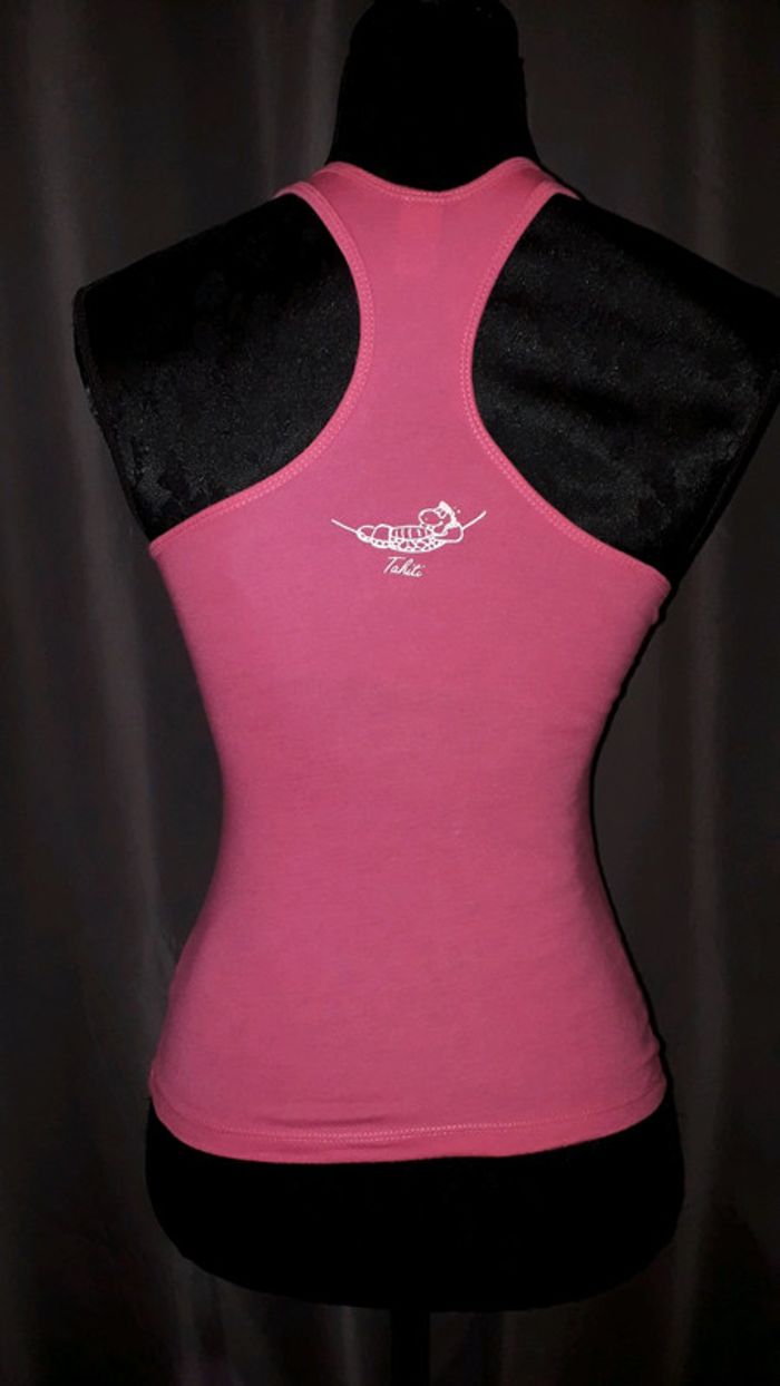 Très joli débardeur rose avec un peu d'humour grâce au message "si maman ne veut pas demande à mamie !" en blanc. Marque Kavio Girl taille S qui correspond plus à du XS.
