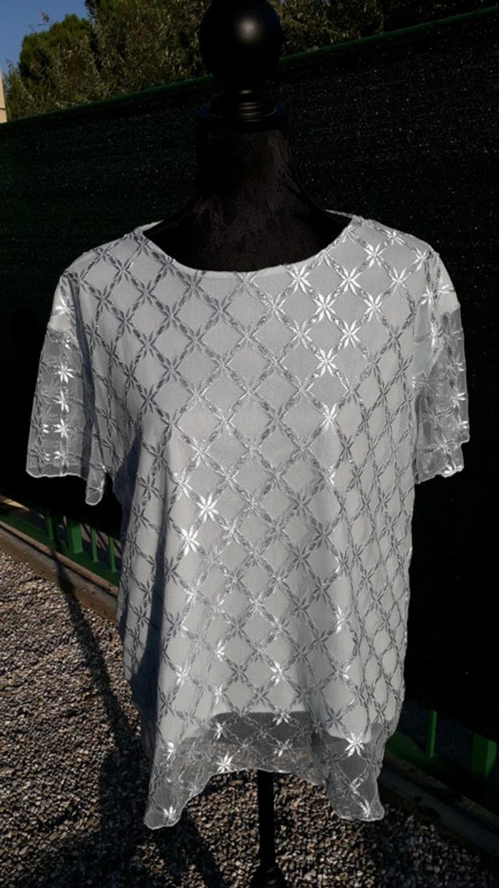 Très joli tee-shirt effet chemisier bleu ciel taille XL. Très belles finitions.