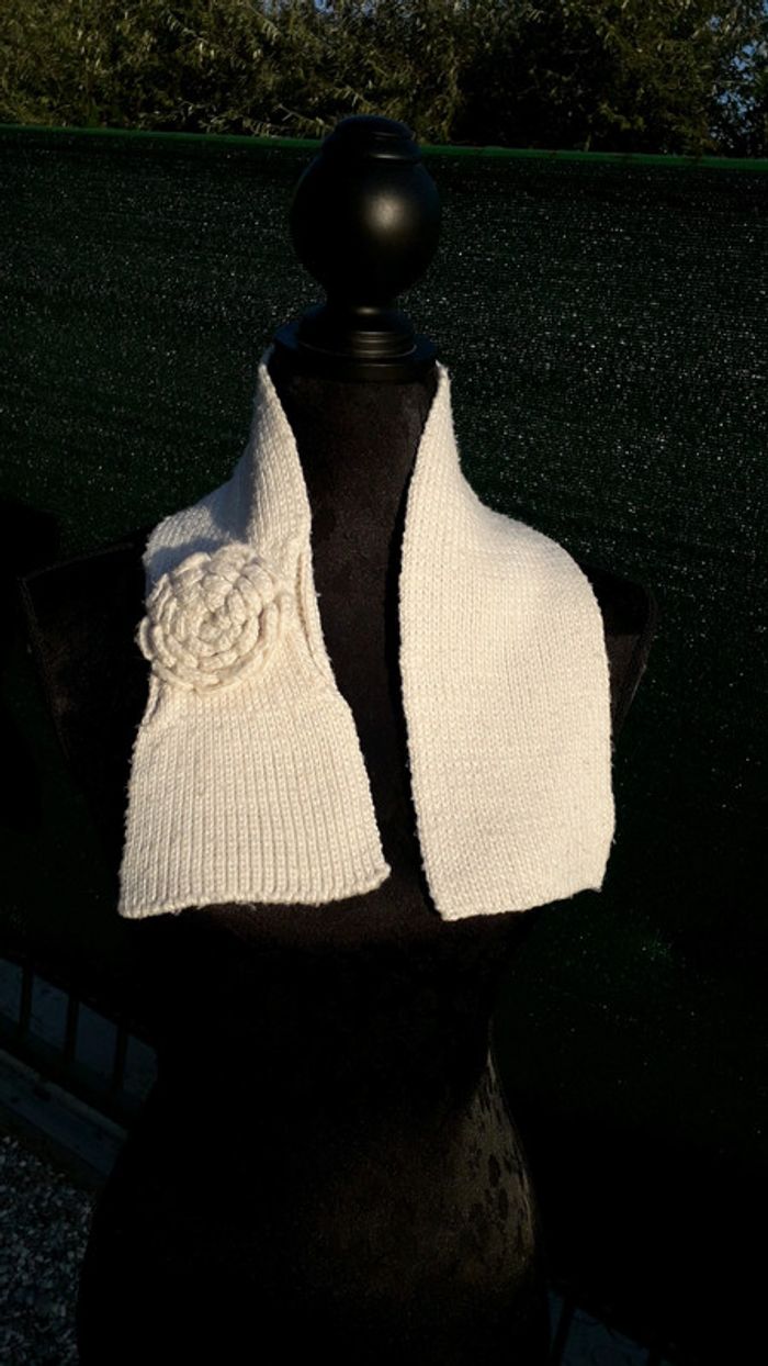 Belle écharpe pour bébé écru en laine avec une fleur dessus.