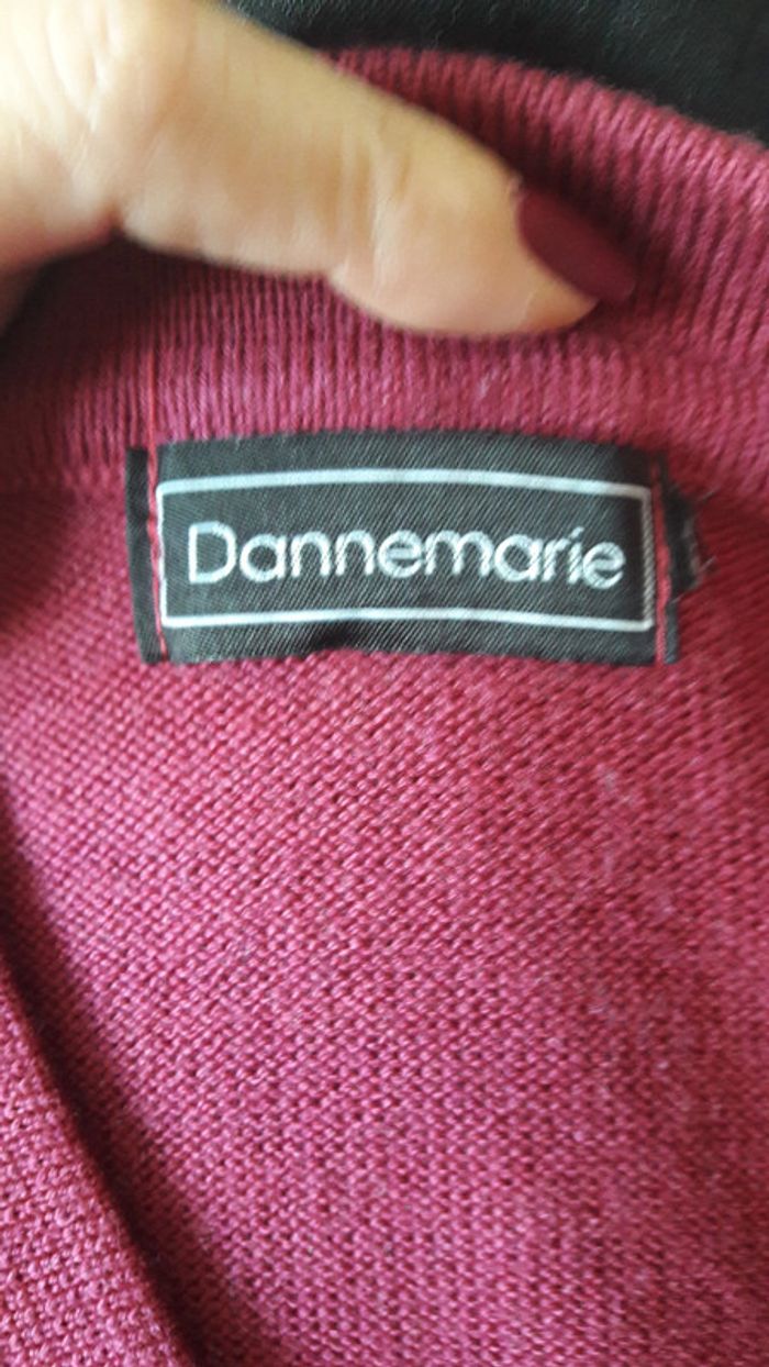 Pull manches longues de couleur framboise, taille L, de la marque Dannemarie. Strass en finitions sur le devant.