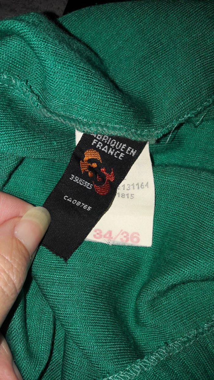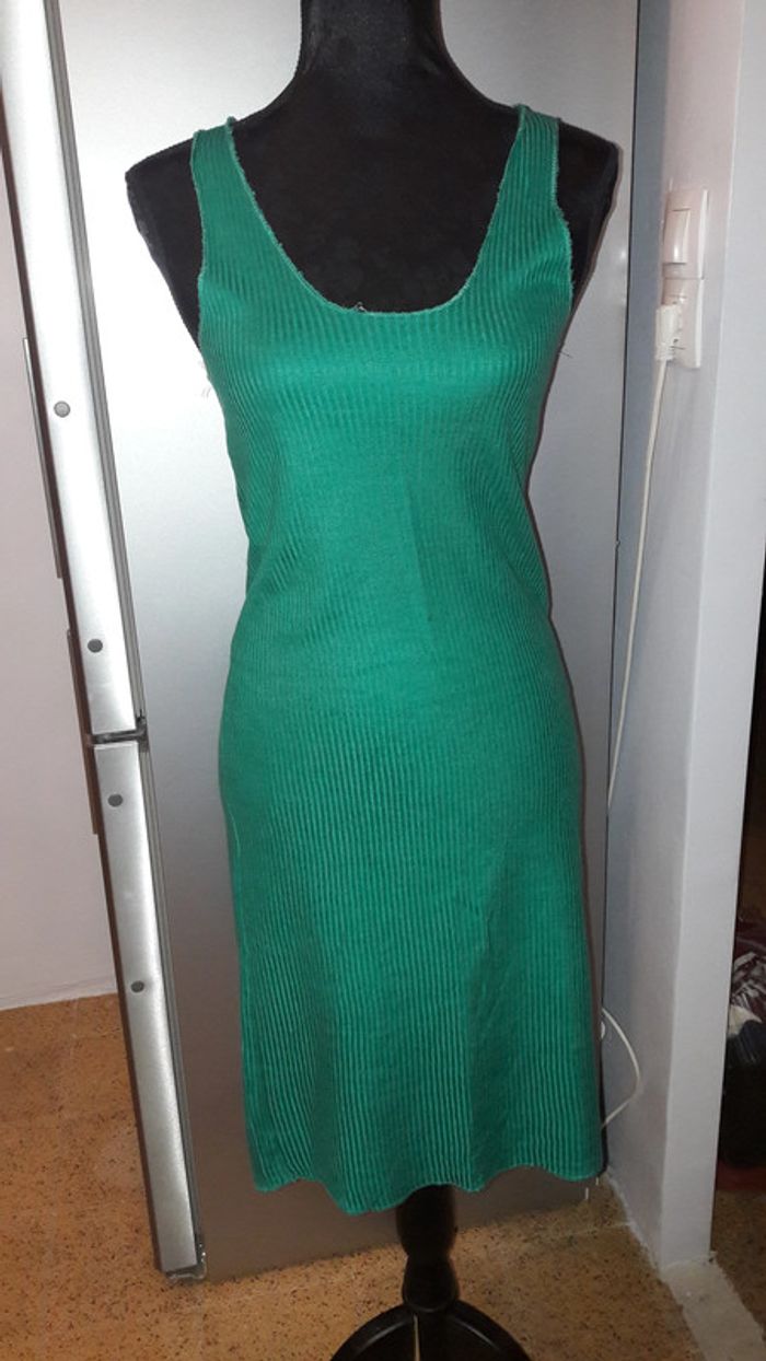 Robe verte débardeur de la marque 3 Suisses, taille 34 / 36. Léger fil tiré sur l'encolure (cf photo). Elle arrive légèrement au dessus du genou.