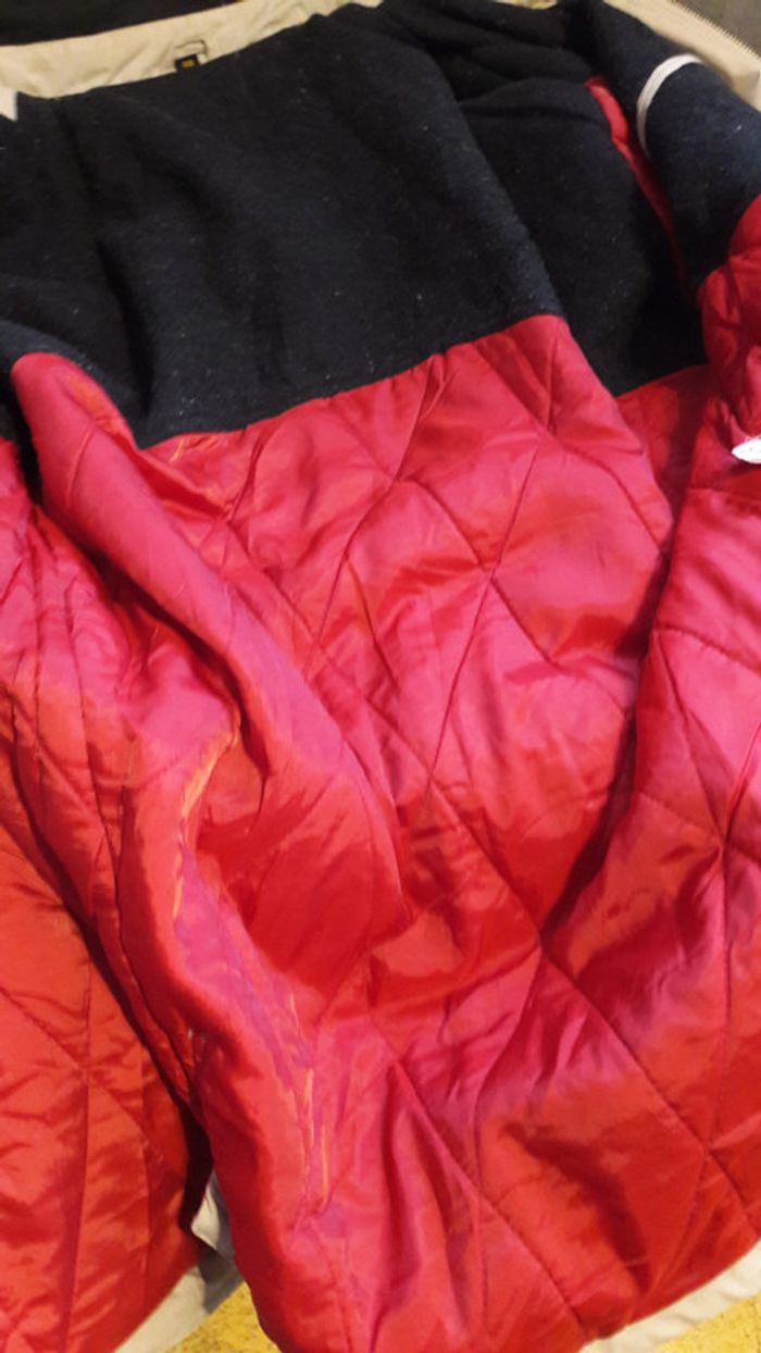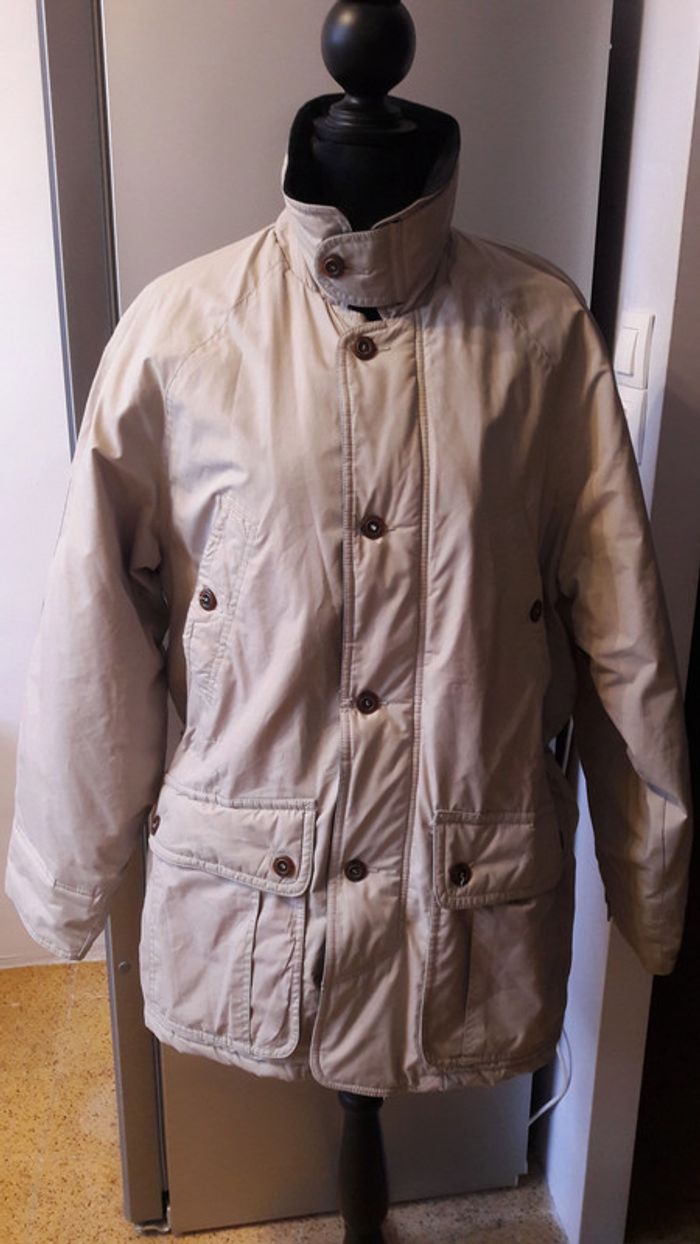 Manteau homme, taille 48, marque Dynan Outdoor. Couleur beige et boutons marrons. 4 poches sur l'extérieur et 1 à l'intérieur. 1 fermeture éclair et 1 fermeture en boutons. Presence d'une capuche. Quelques bouloches sur la polaire à l'intérieur et une petite tâche au dessus d'une des poches (cf photos).