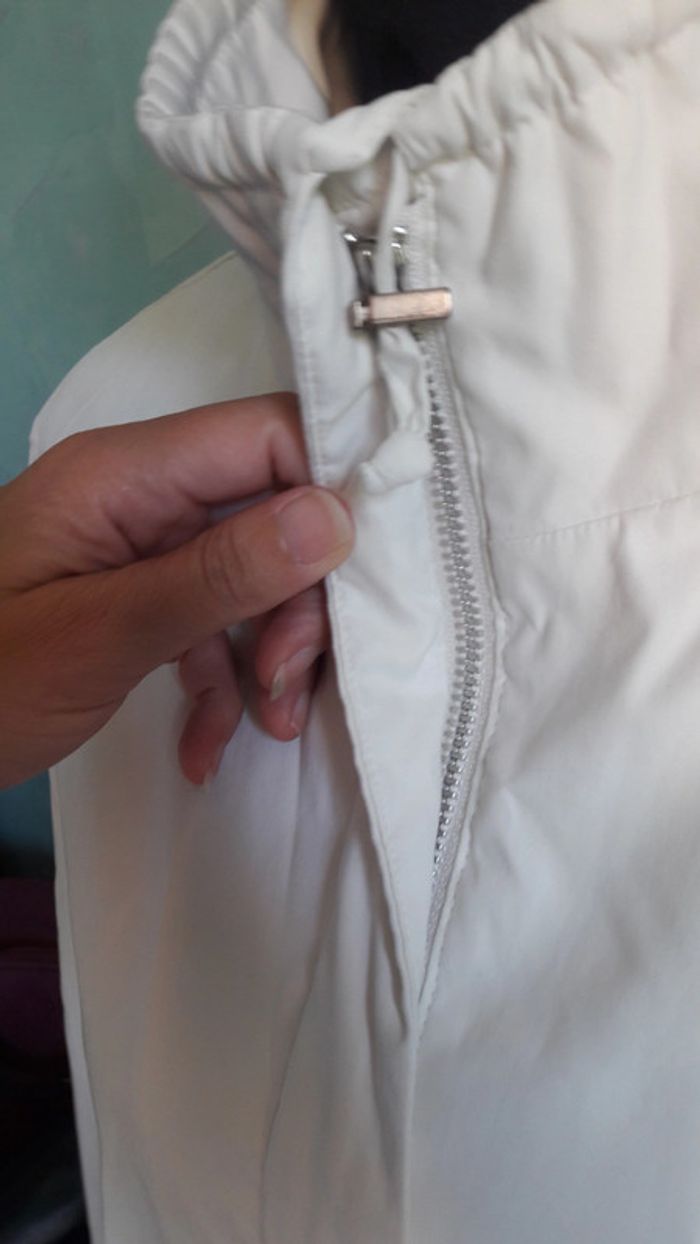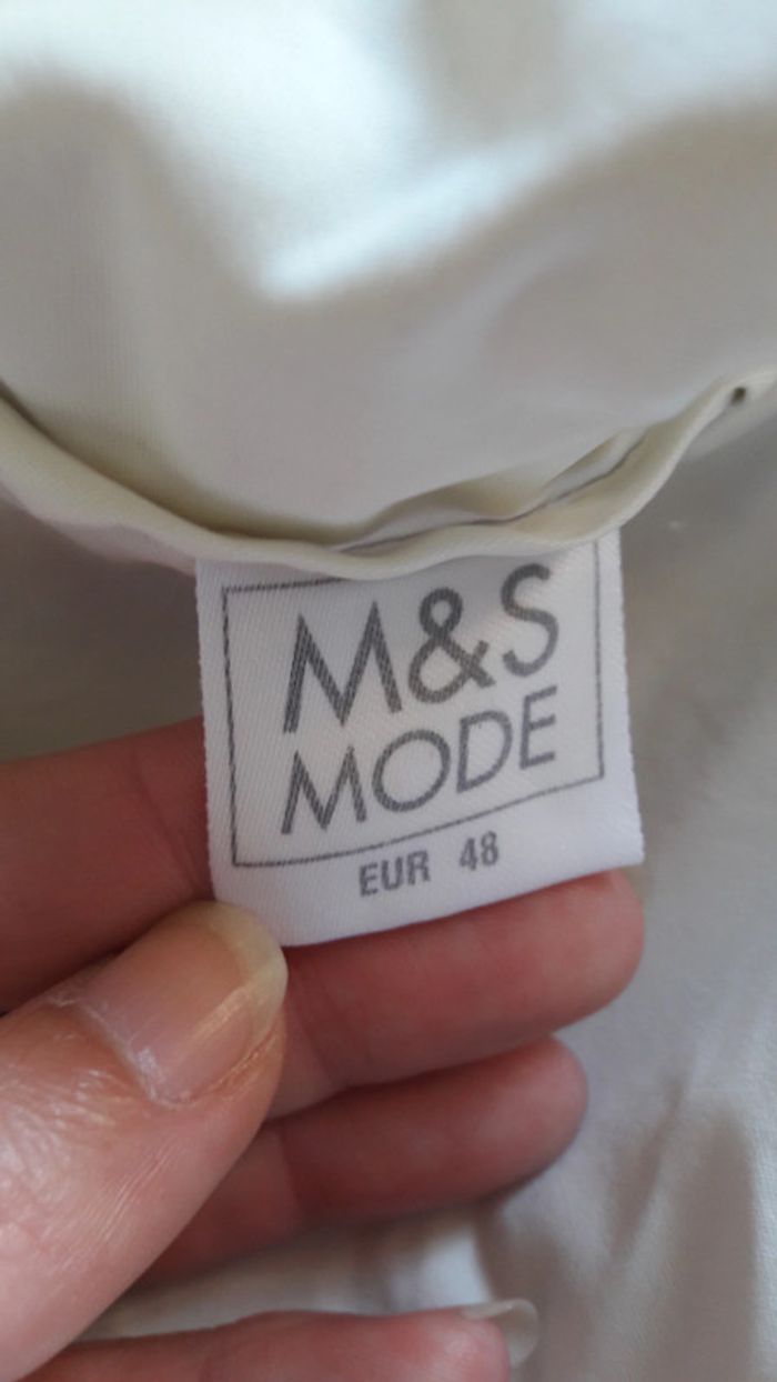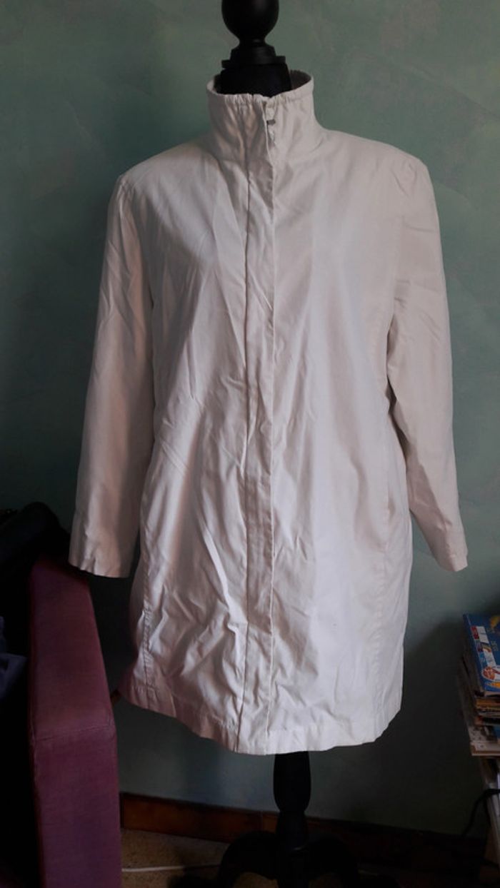 Parka mi-saison blanc cassé avec épaulettes, fermeture zippée, taille 48. Marque M&S Mode.