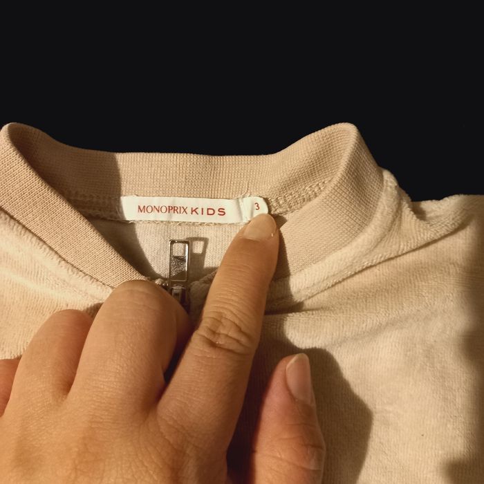 Gilet enfant 3 ans, en très bon état, couleur rose clair avec fermeture éclair, marque : monoprix , 80% coton et 20% polyester.