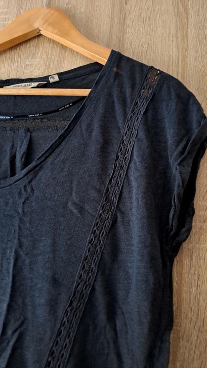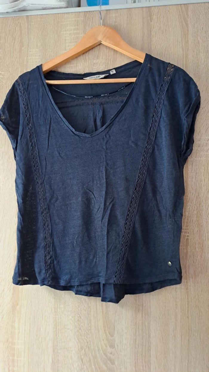 Blouse bleue marine Garcia avec détails dentelle. Taille M. Très bon état. Matière légère et élastique