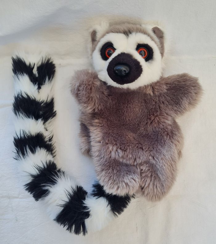 Doudou marionnette Lemurien blanc et gris - Longue queue - Eco-6