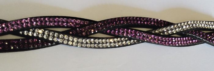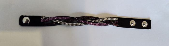 Bracelet torsadé composé de 3 lanières strass rose, violet et blanc. Longueur : 21 cms. Double bouton pression pour ajustement parfait du bracelet. N'hésitez pas à regarder mes autres ventes. Envoi rapide et soigné.