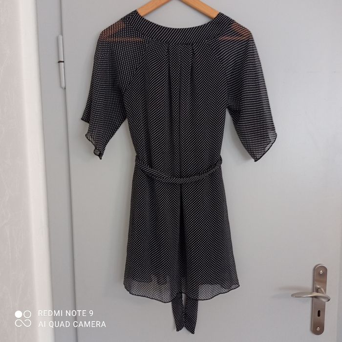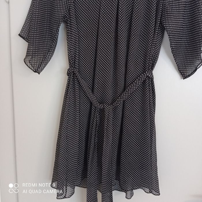 Manches 3/4. Fluide, légère. Doublée. Quelques petits défauts voir photos. Taille estimée. Voici les mesures prises à plat : aisselles : 50cm, longueur : 83cm. C9