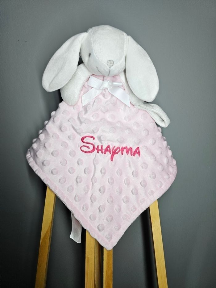 Doudou lapin personnalisé Taille 36×36cn Prénom broder Couleur et écriture à choisir