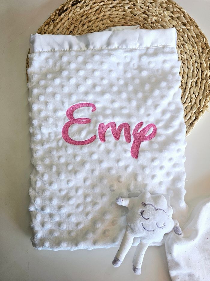 Couverture bébé blanche 75x75 cm Personnalisé Prénom broder Couleur et écriture à choisir