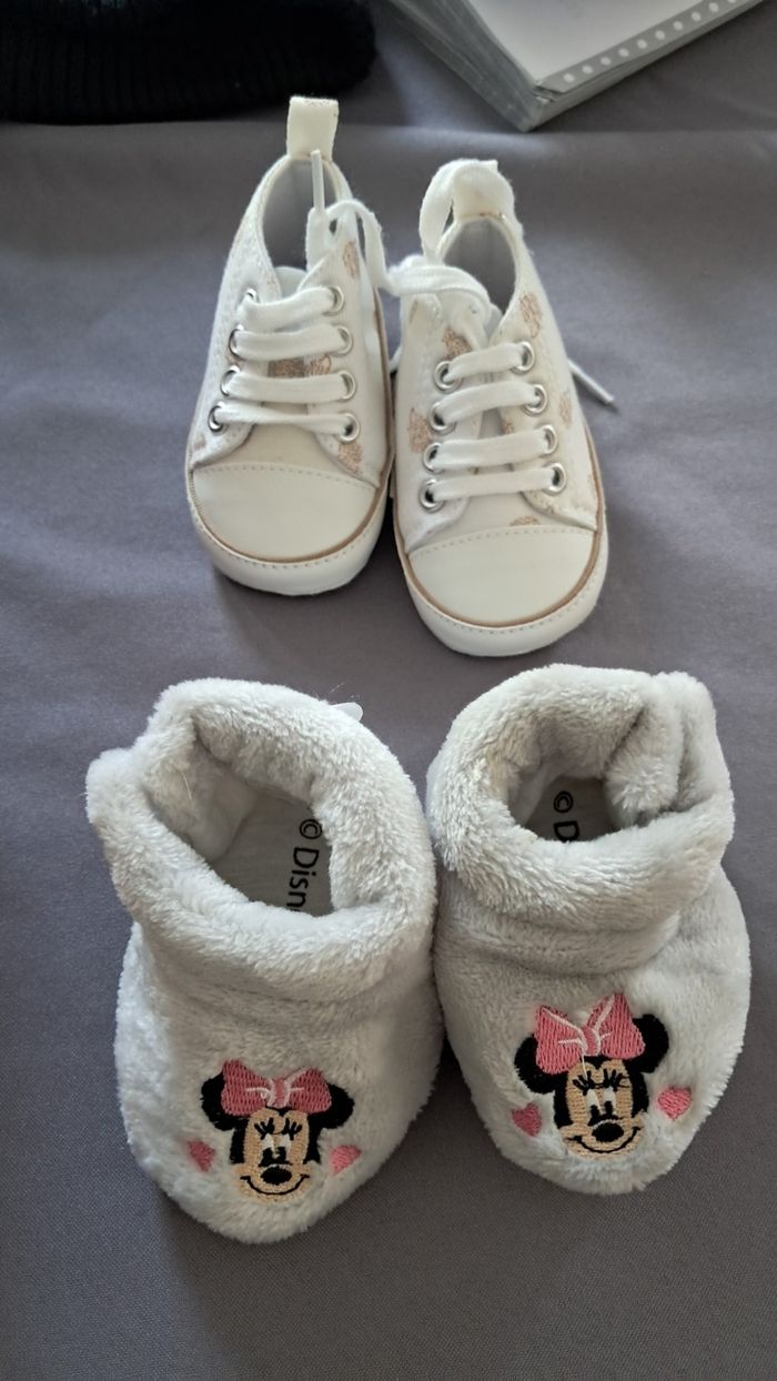 Vend 1 paire de chausson grise et chaussure 0/3 mois Chausson mini et 2 paires de chaussures 9/12mois 3 paires de chaussures taille 19 Le tout 4€