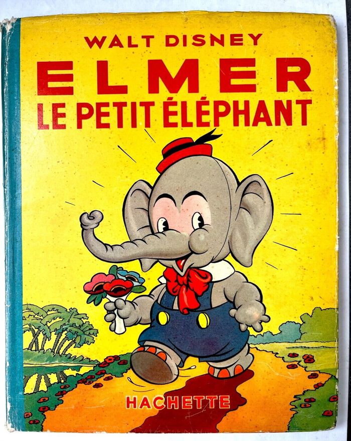 Livre hachette Disney Helmer le petit elephant Livre collection hachette de 1937 Helmer le petit elephant Vendu avec sa jaquette papier la couverture se dechire et 2 pages ont ete colorier