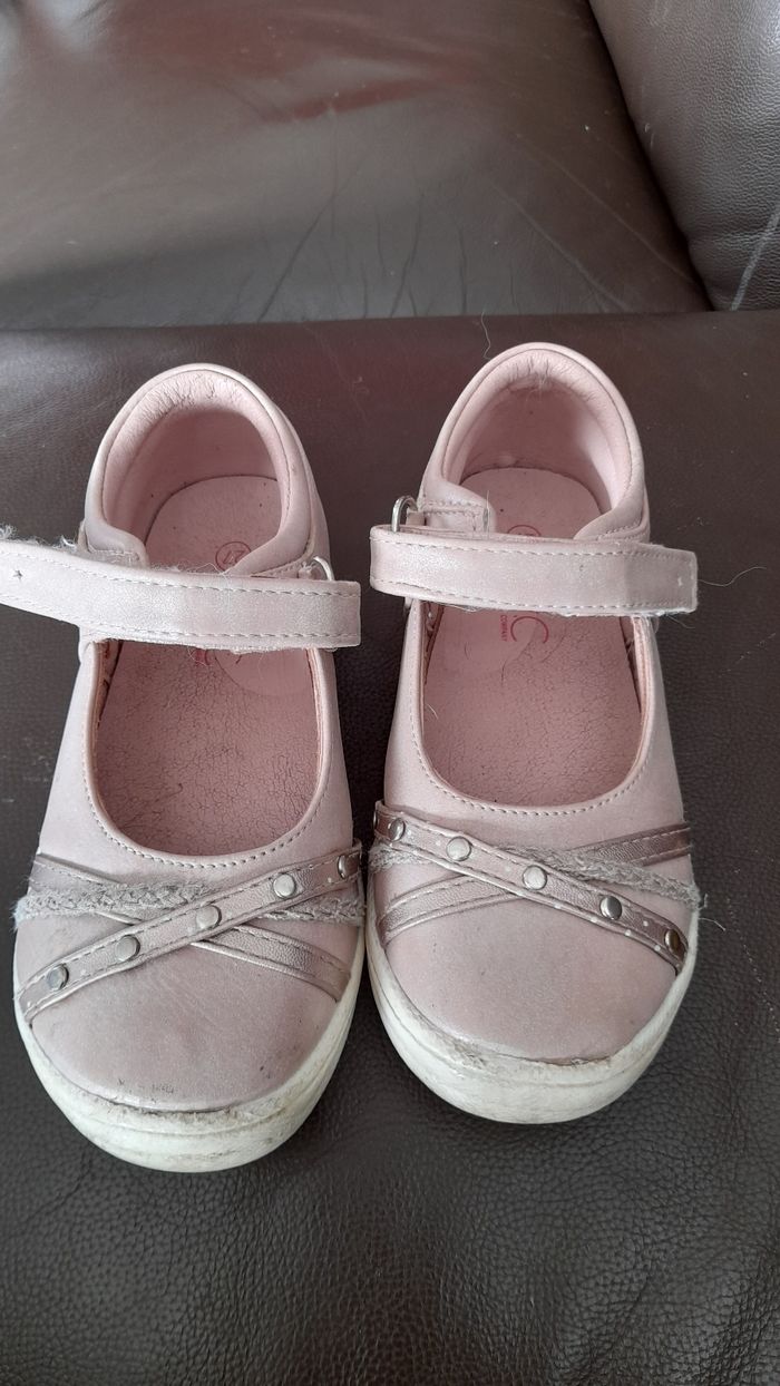 Ballerine cuir, fermeture par velcroc, couleur rose poudrée, 27