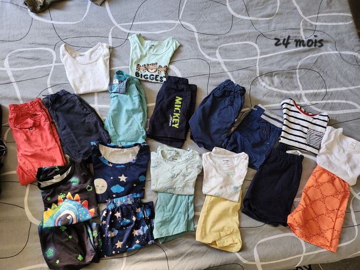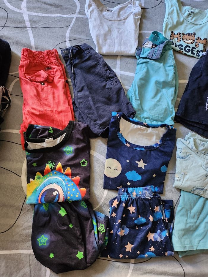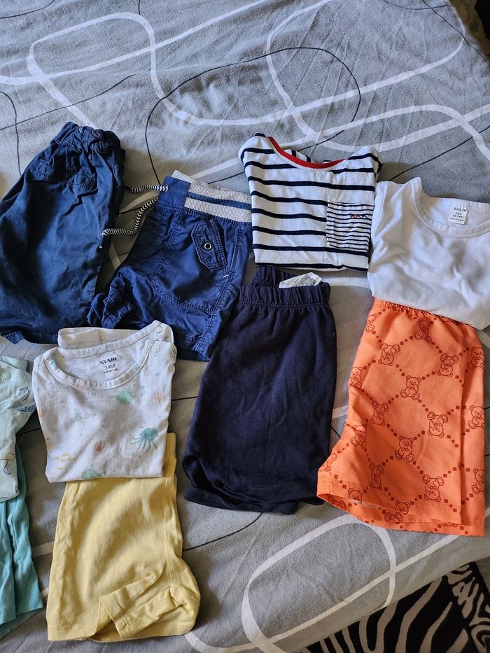 2 tee shirts manches "marcelle" 1 pantacourt 5 shorts 4 pyjamas short 1 ensemble terre de marin 1 ensemble shein (neuf)