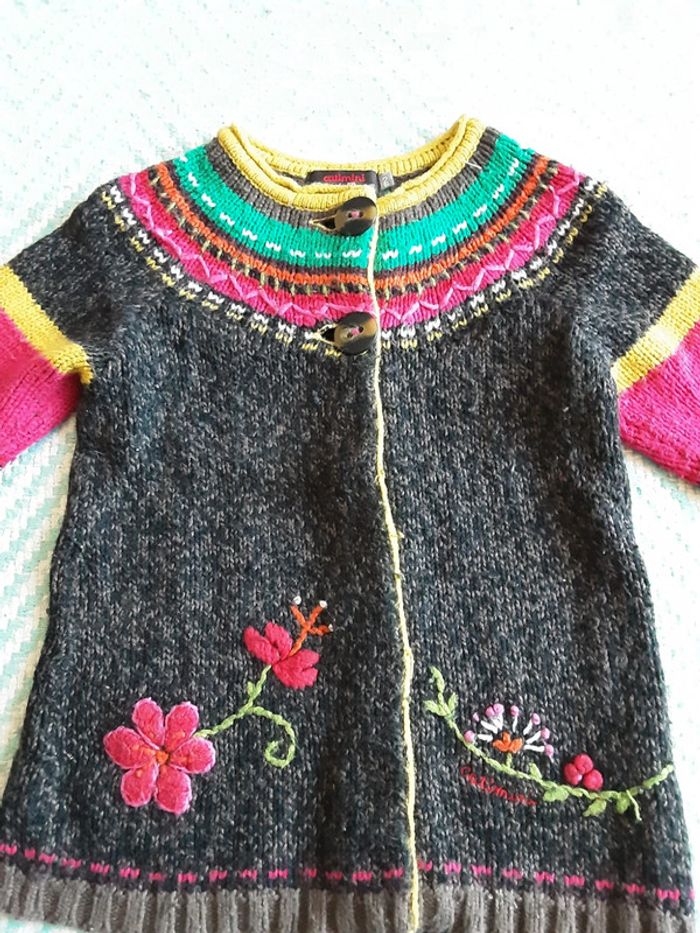 Gilet manteau laine fleurs brodé T. 2 ans - photo numéro 1