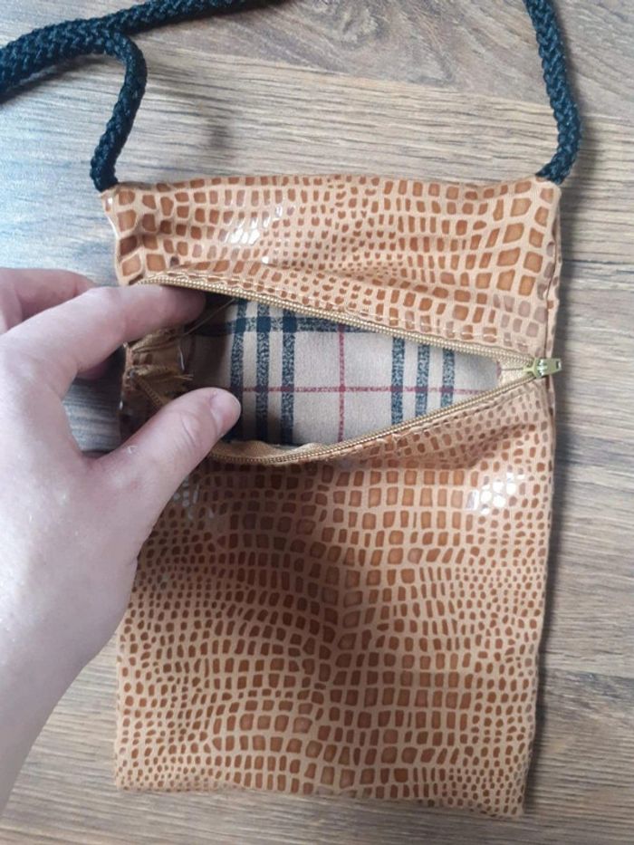 Pochette bandoulière Couleur camel, effet peau de serpent 15 × 22 cm Une seule poche. Excellent état #linejacpochettesac