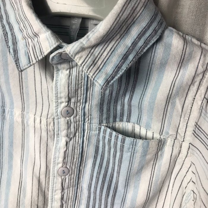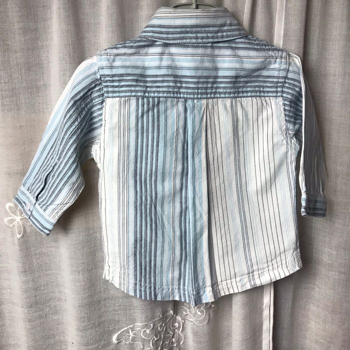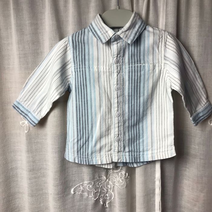 Chemise blanche rayé bleu Taille 6 mois 2 petites tâches sur le col, voir photos Tout compte fait