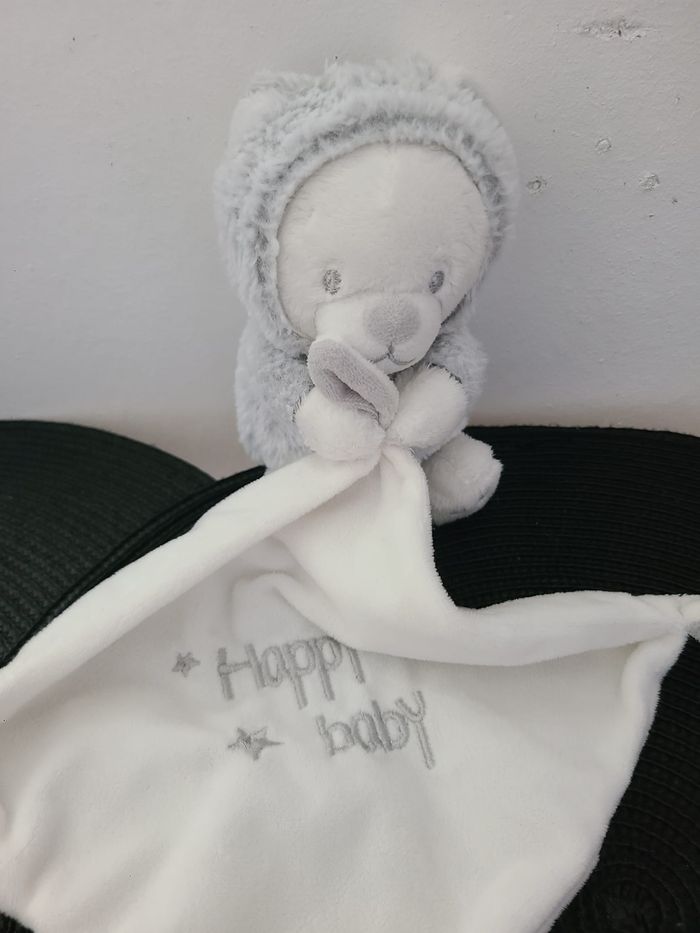 Doudou Lapin Ours Mouchoir ORCHESTRA PREMAMAN Blanc Gris HAPPY BABY DOUX 58