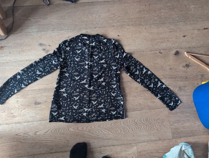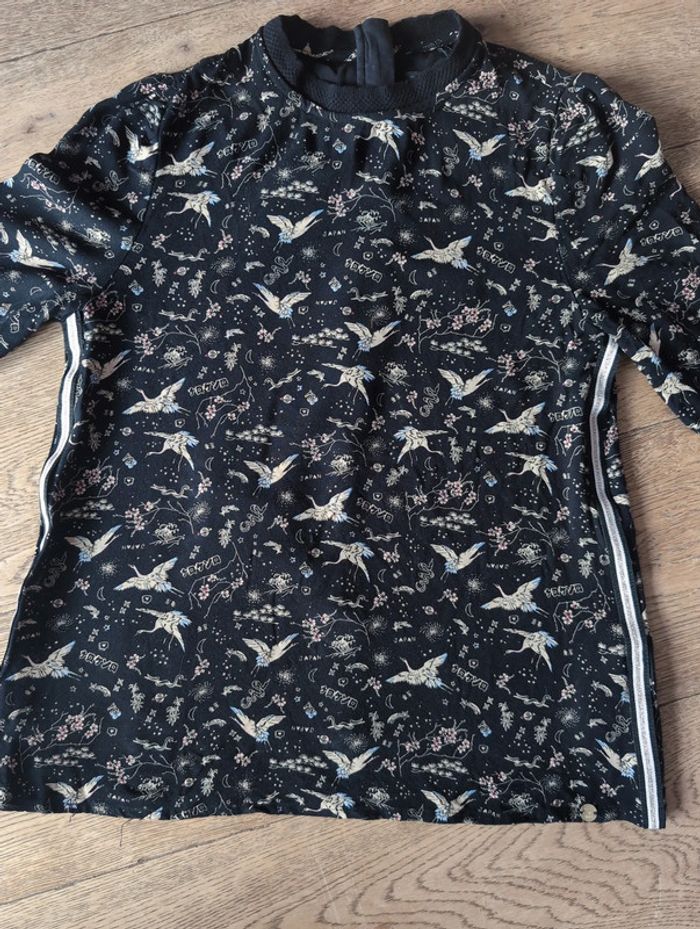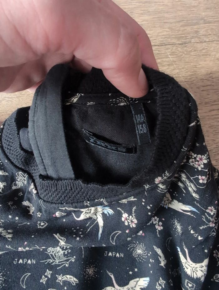 En parfait état. Manches longues, ouverture au cou par petite fermeture éclair dans le dos. Illustrations autour du Japon en surimpressions dorées.