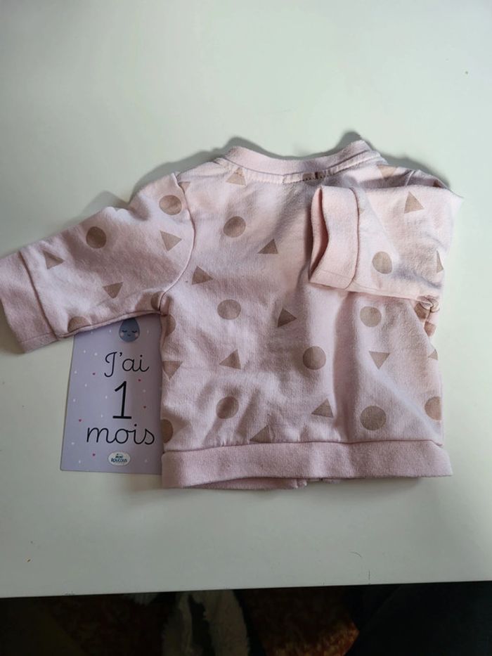 Veste rose à pois doré zippé sans capuche marque kiabi taille 1 mois Parfait état sans trou ni tache