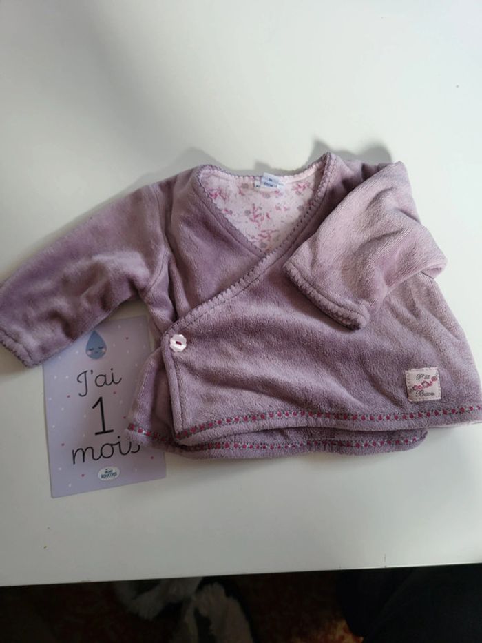 Gilet épais violet en cache cœur marque p'tit bisou taille 1 mois Parfait état sans trou ni tache