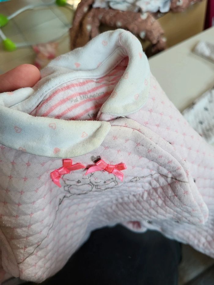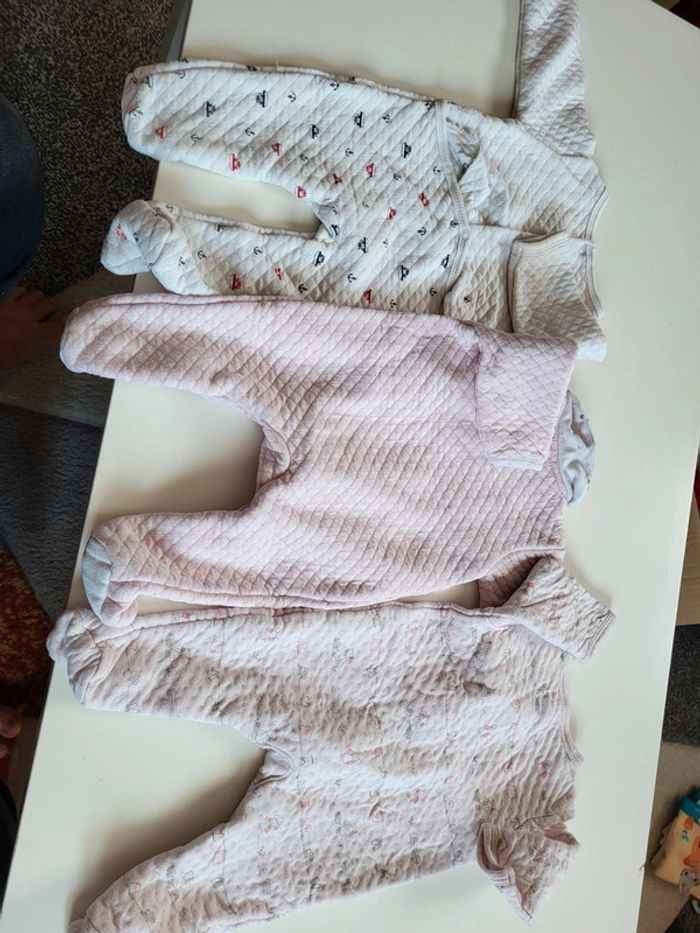 Lot de 3 pyjamas de la marque pat et ripaton Taille 1 mois Légères tâches de lait sur 2 des pyjamas voir photo. Ça part au lavage