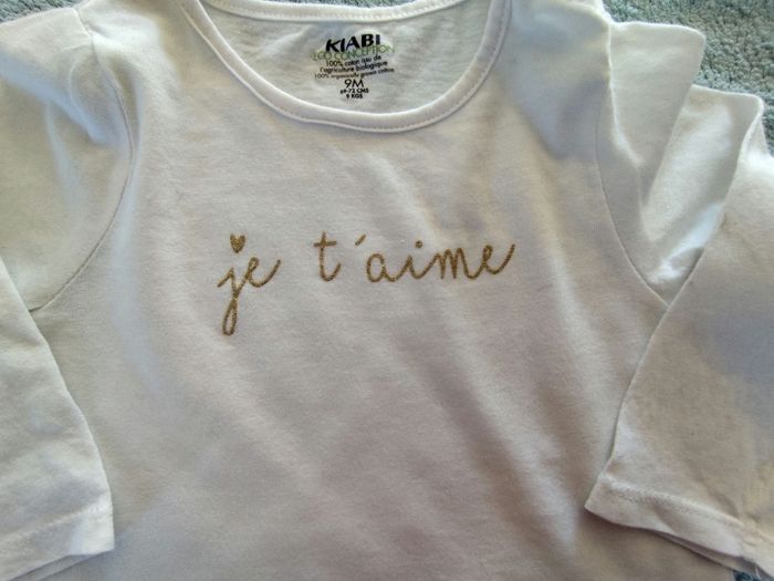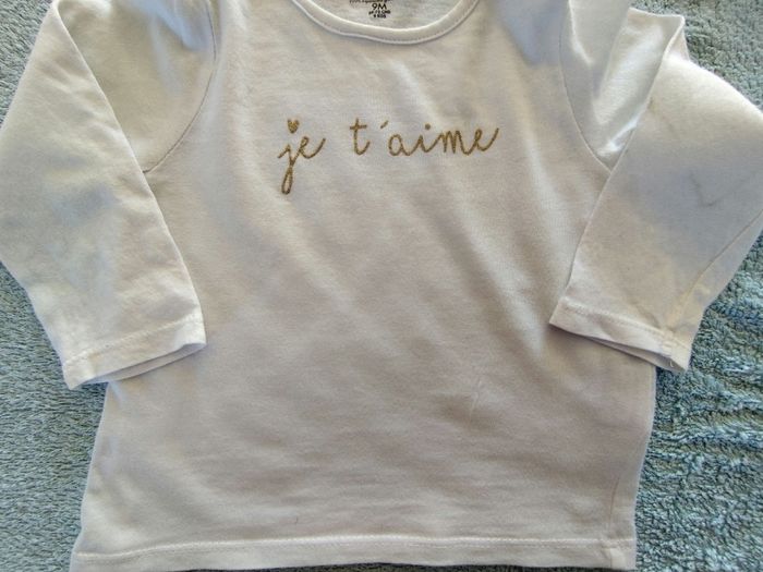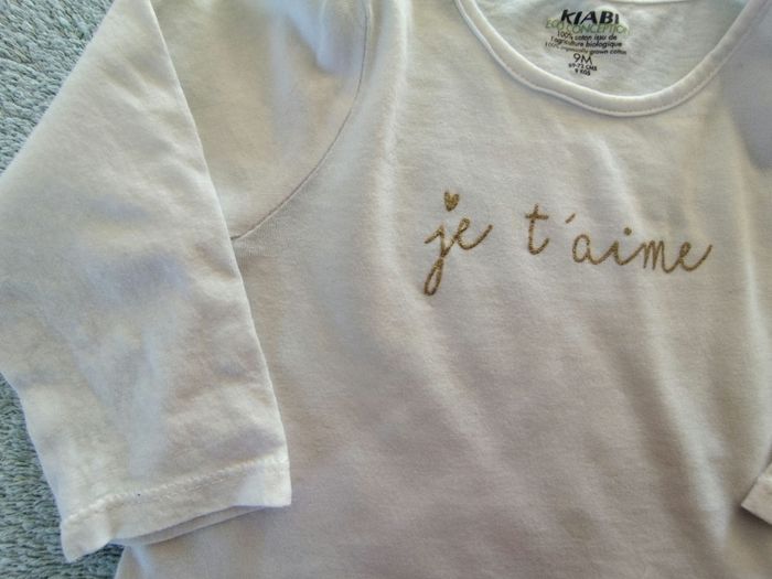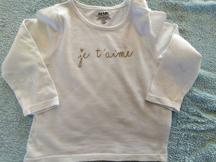 Tee-shirt fille manches longues couleur blanc et doré très bon état taille 9 mois marque Kiabi