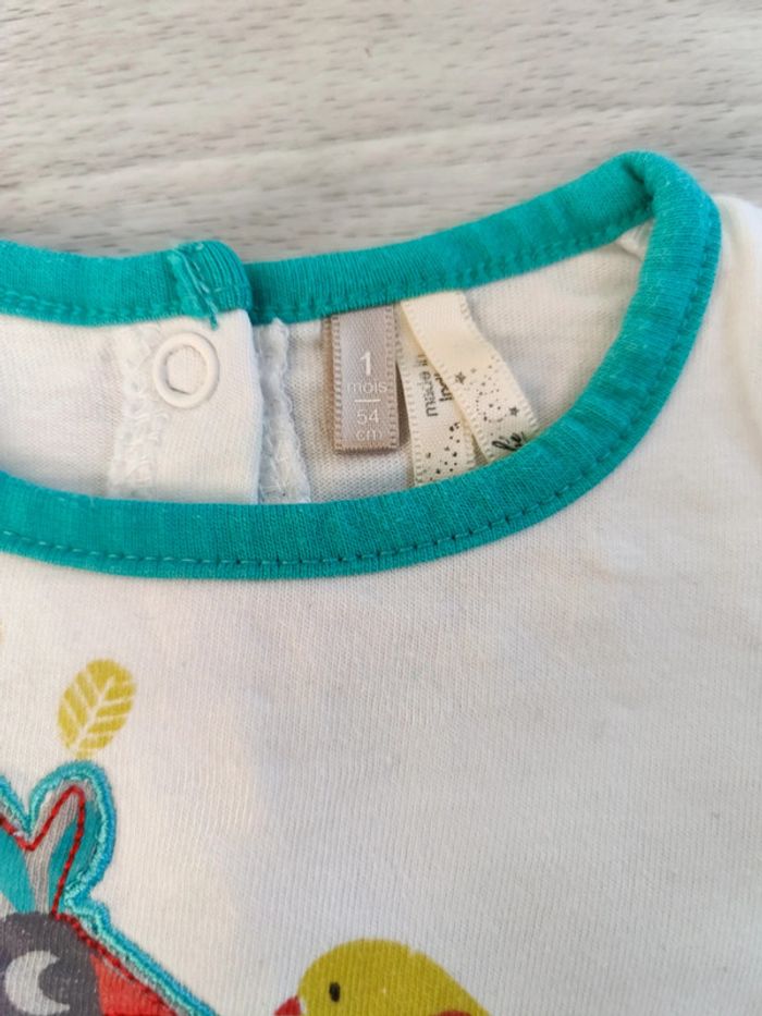 Légère tâche sur l'oiseau jaune du T-shirt (voir dernière photo) #1mois #1moisfille #1moisfille_mlanielu