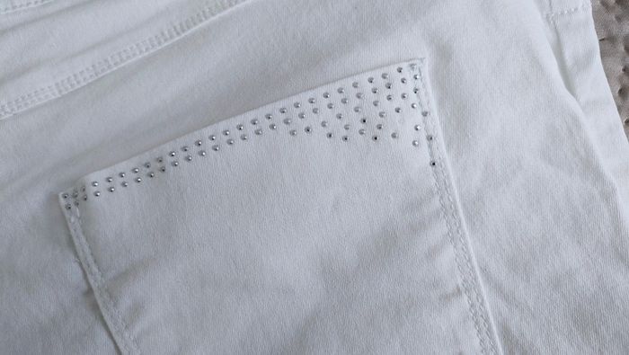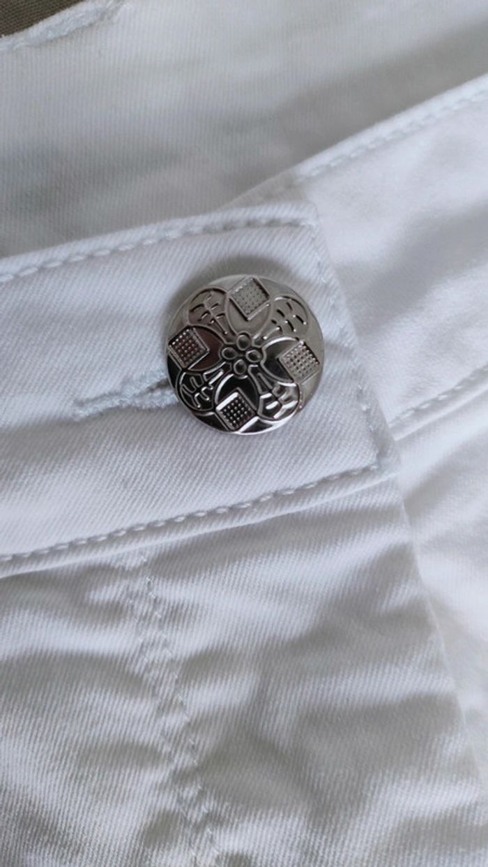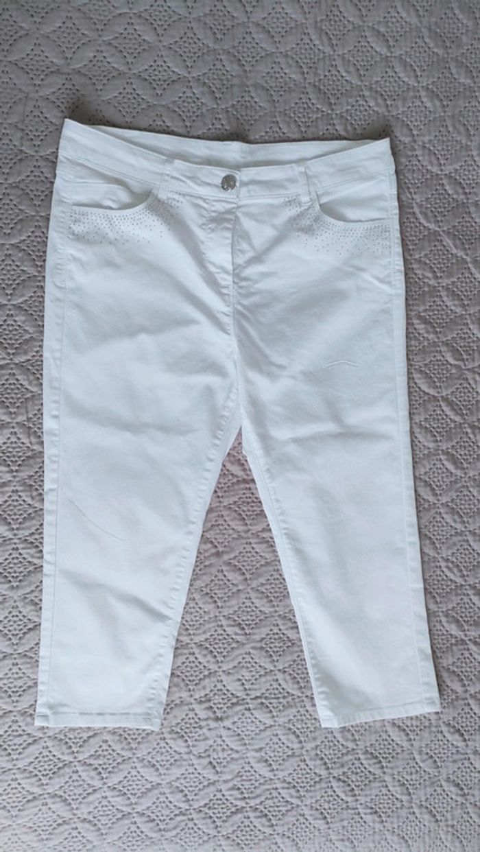 📦 Envoi Très rapide 🚭 Pantacourt blanc taille 44 Stass argenté Mesures en photos