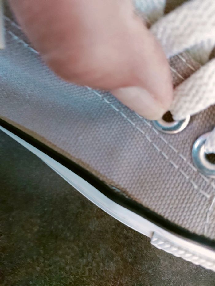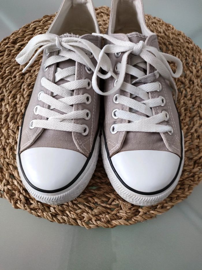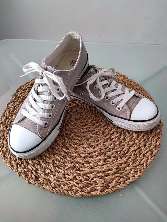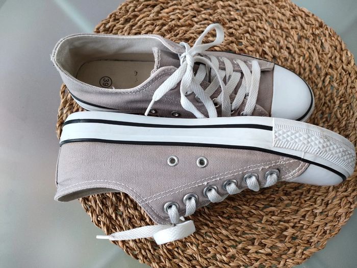 📦 Envoi rapide et soigné 🚭 Basket en toile grise Pointure 39 Acheté cet été peu mise Usure voir photos