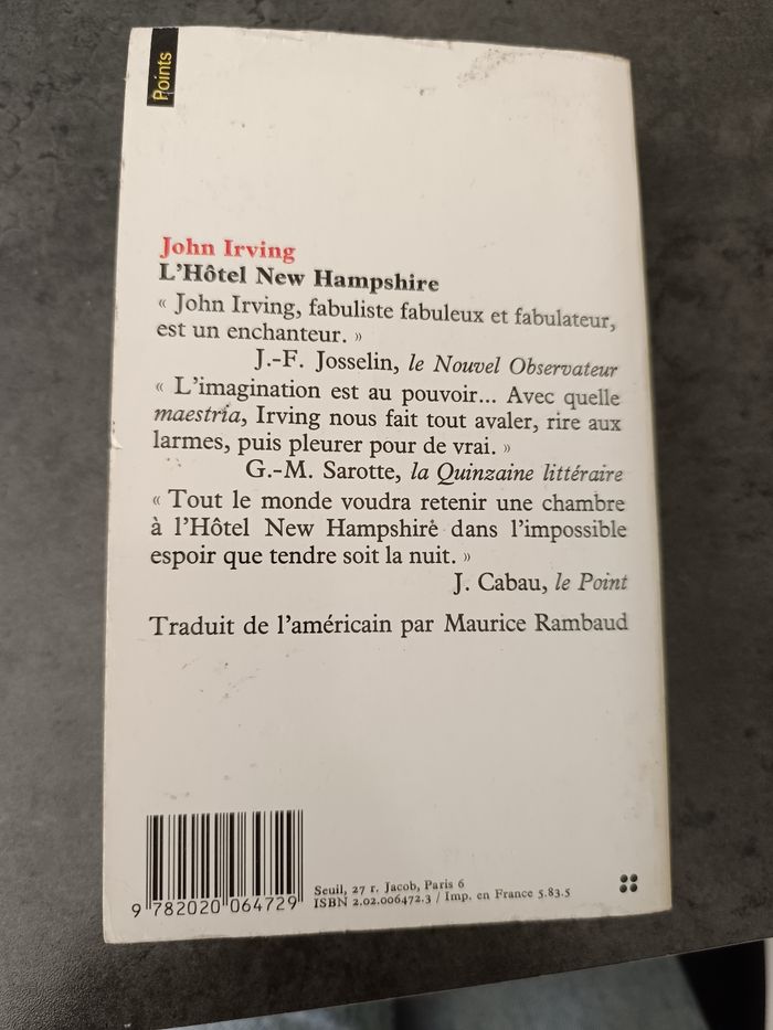 Livre roman Poche L'hôtel new hampshire - John Irving
