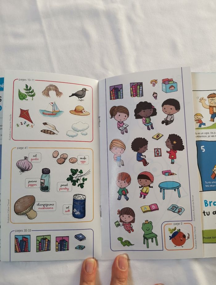Livre abricot avec autocollants, pliure sur le devant de la couverture. #emilie77127livres