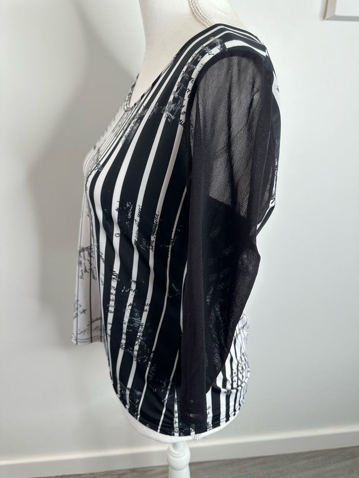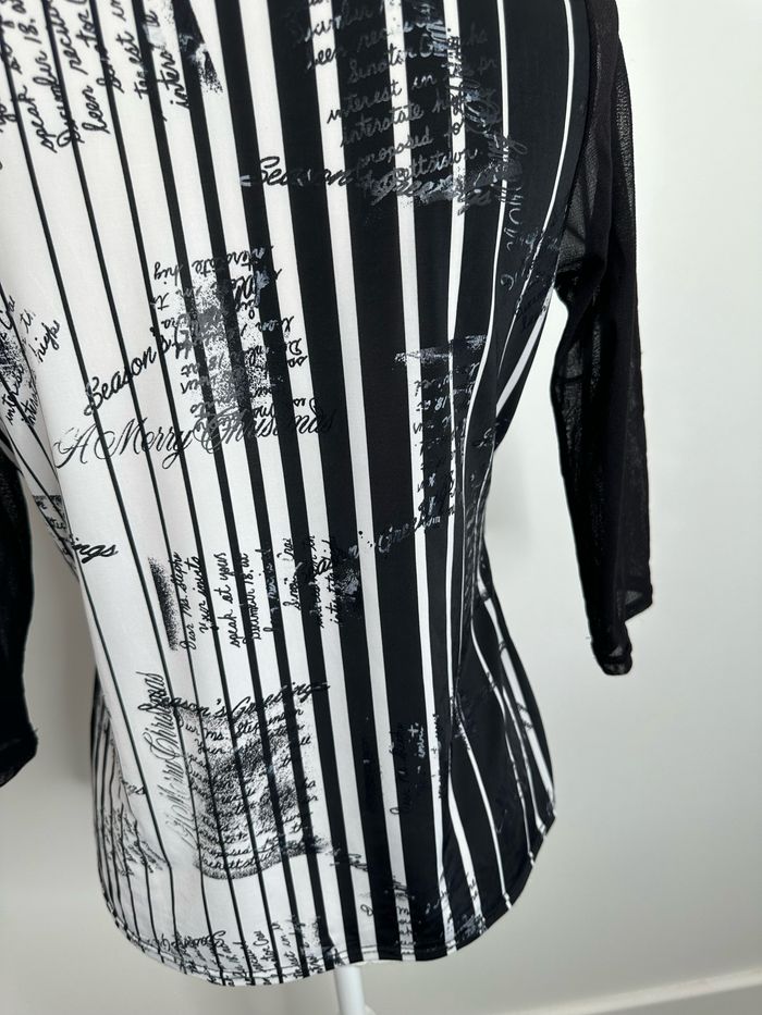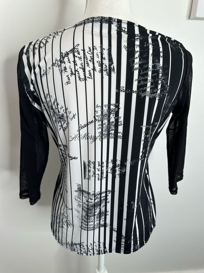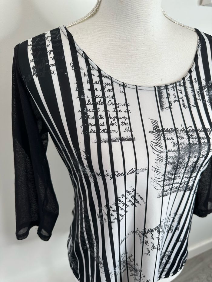 Blouse noire et blanche bariolée et mesh Xanaka Y2K T2 38 M - photo numéro 9