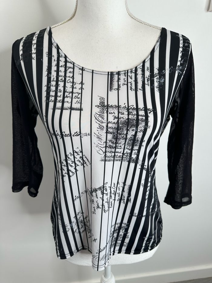 Blouse noire et blanche bariolée et mesh Xanaka Y2K T2 38 M - photo numéro 1
