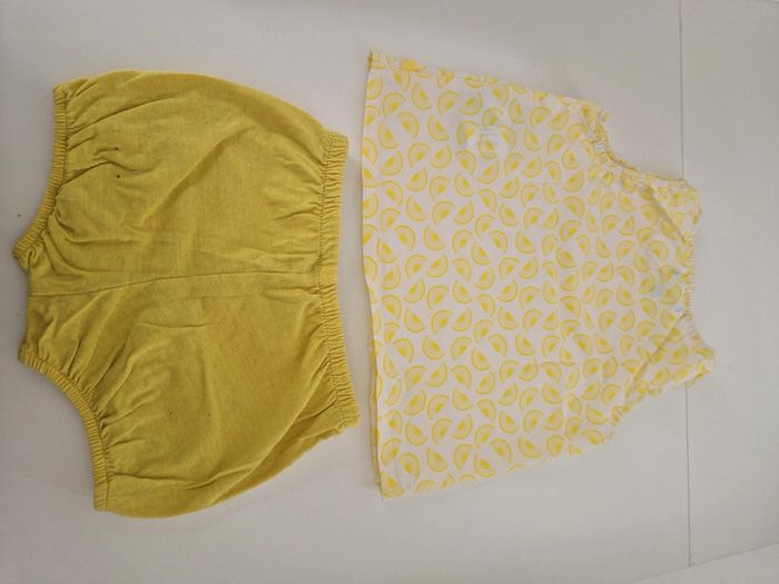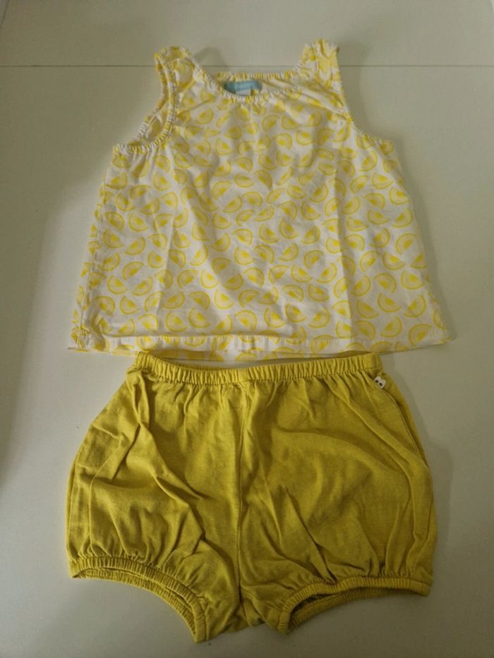 Ensemble Obaïbi t shirt + short jaune 12 mois Très bon état