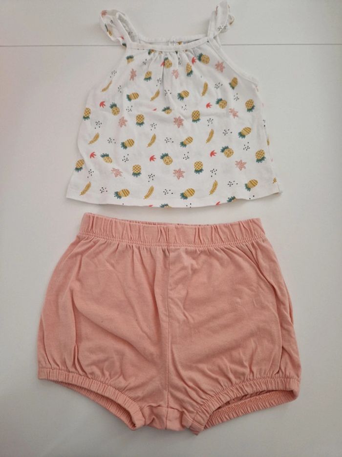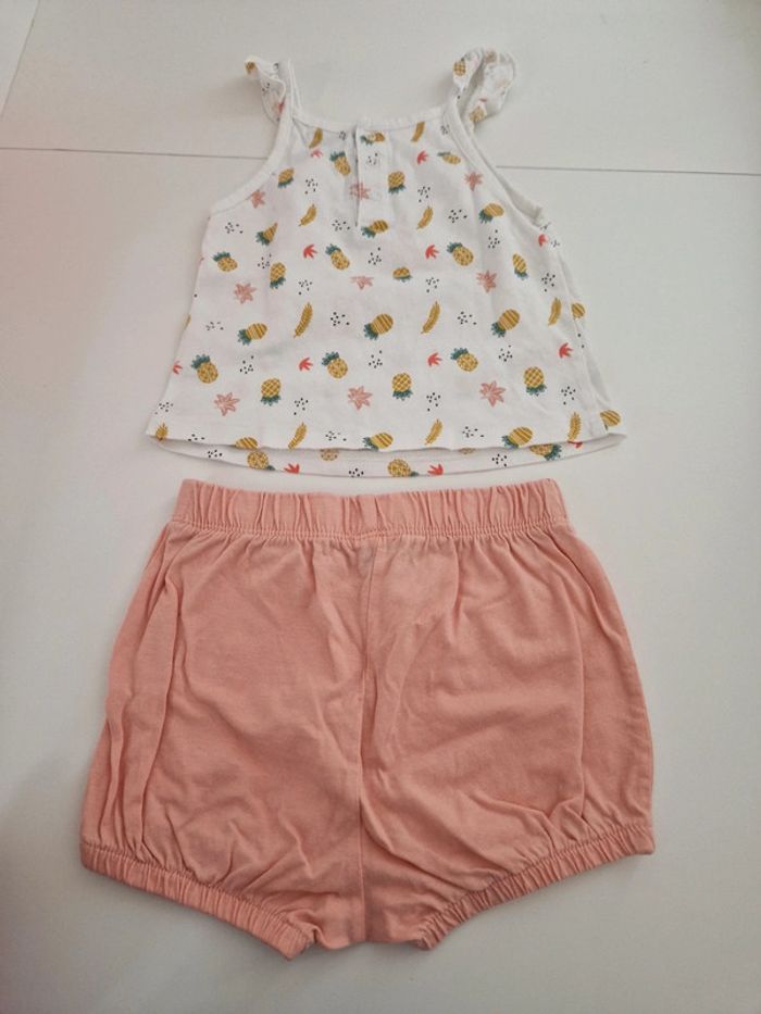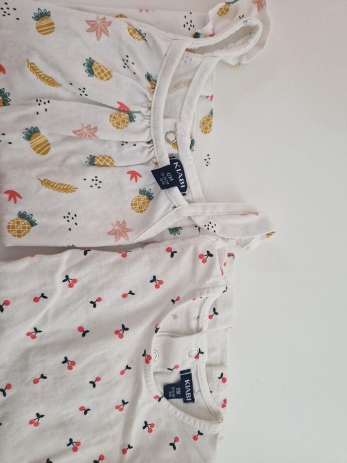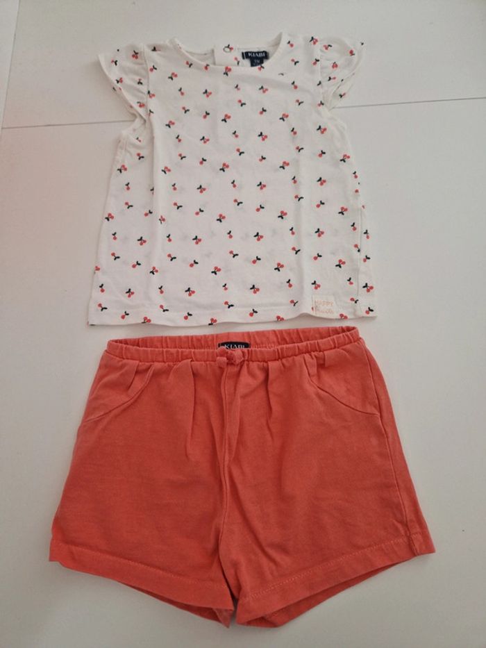 2 ensembles été kiabi 12 mois 1 t shirt à bretelles 1 t shirt manches courtes Chacun avec son short coloré