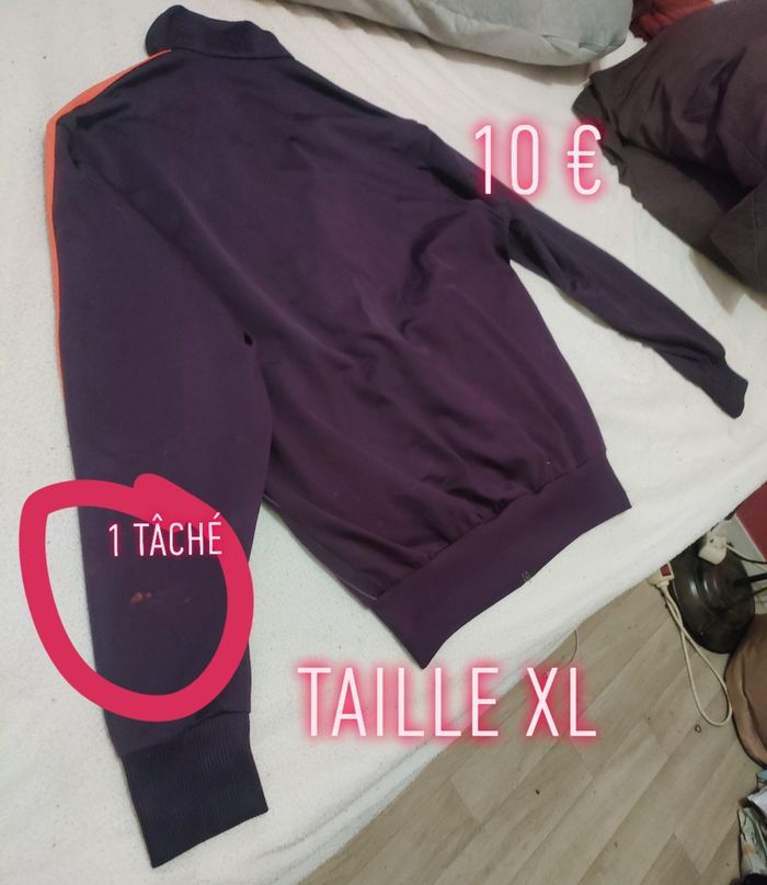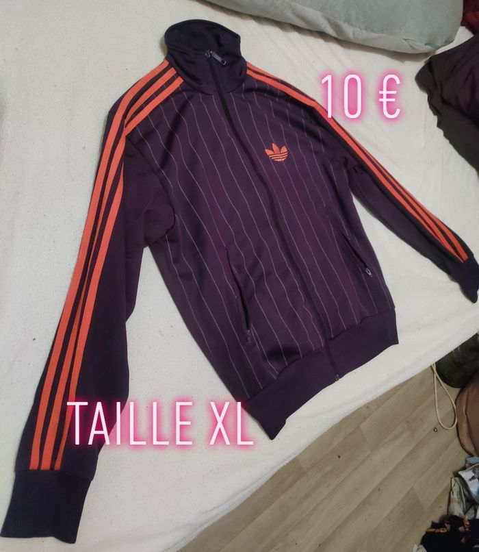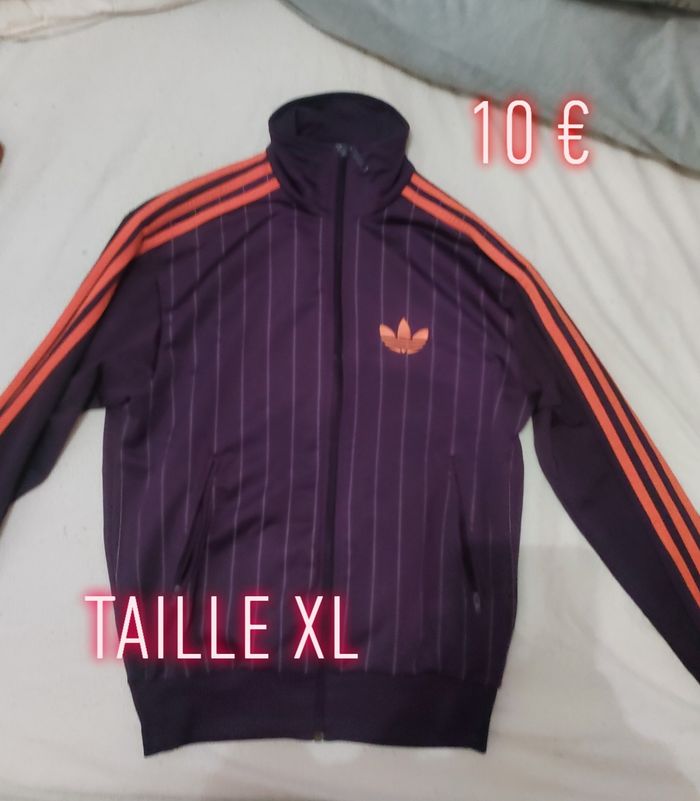 * Veste adidas violette/orange taille XL * 1 tâche sur le bras gauche au niveau du coude * En très bon état (sauf tâche)