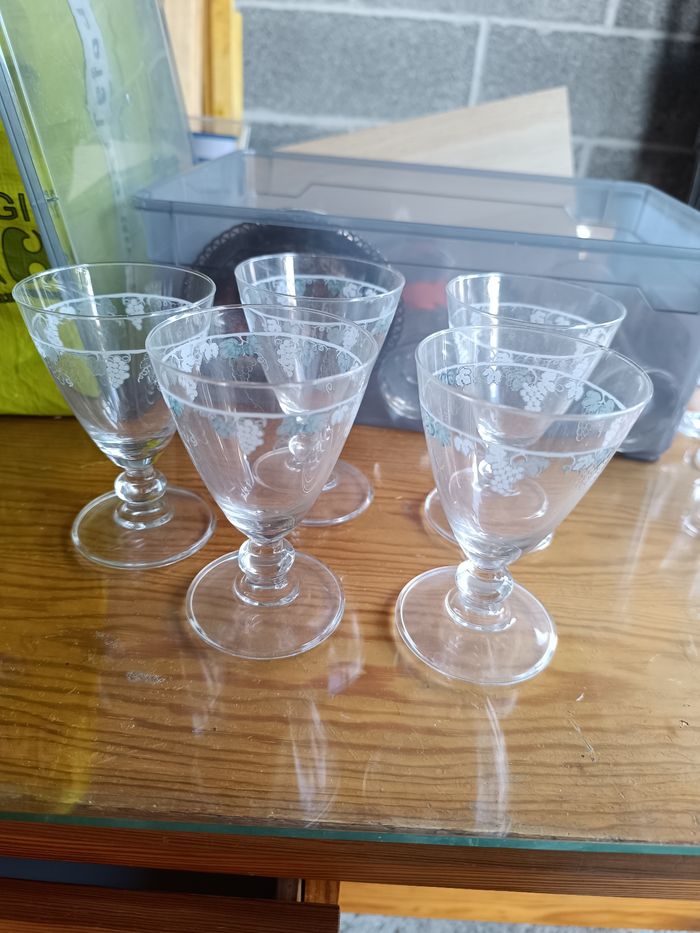 Lot de 5 verres à liqueur motifs raisin