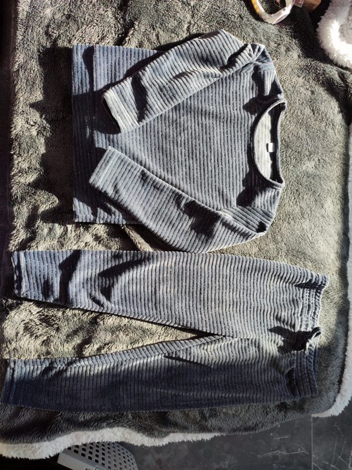 Ensemble chaud pantalon pull legging rayé velours tout doux - photo numéro 2