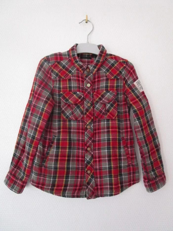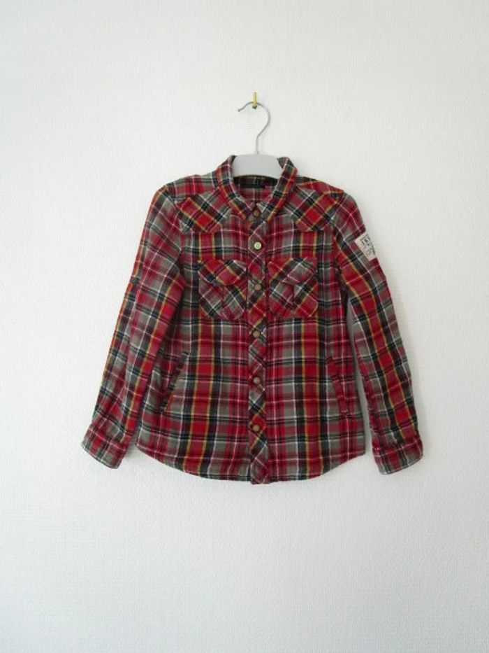 Chemise écossaise de marque IKKS taille 4 ans Manches longues Noir/rouge/kaki/moutarde/écru Ecusson sur la manche gauche 100% coton En très bon état #mamanbrade59garçon4ans