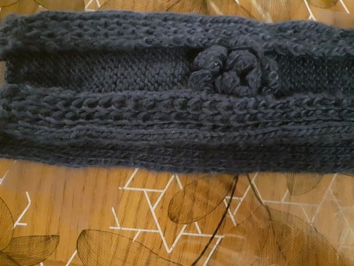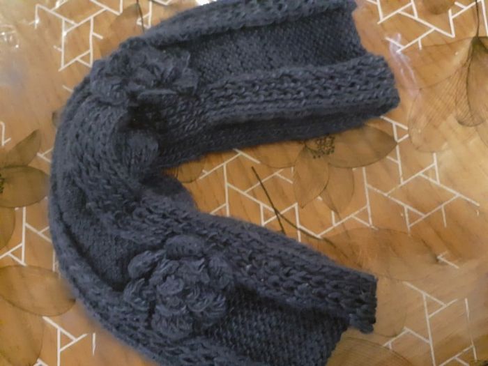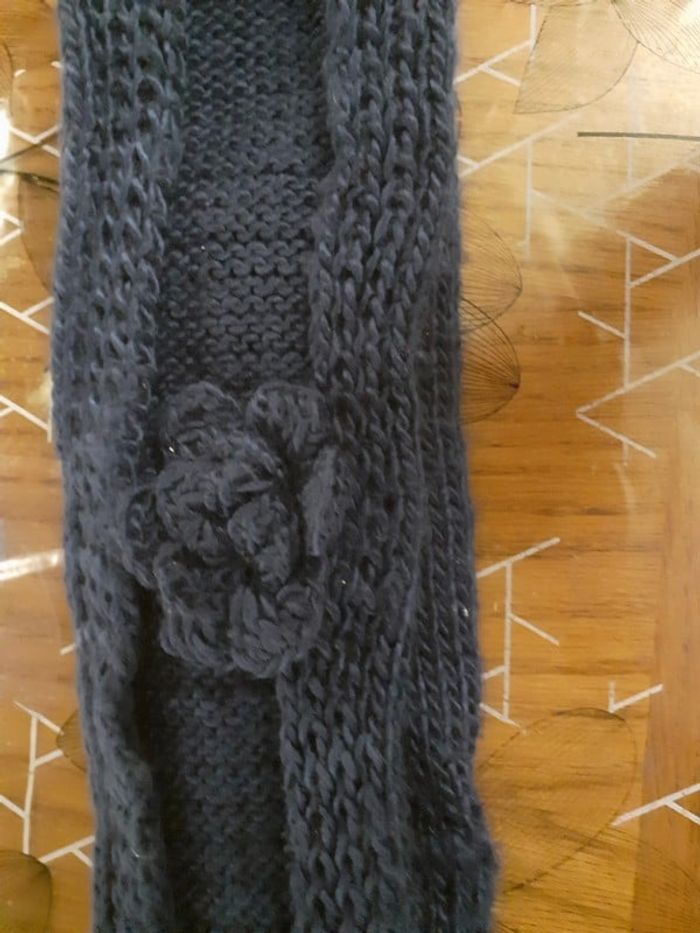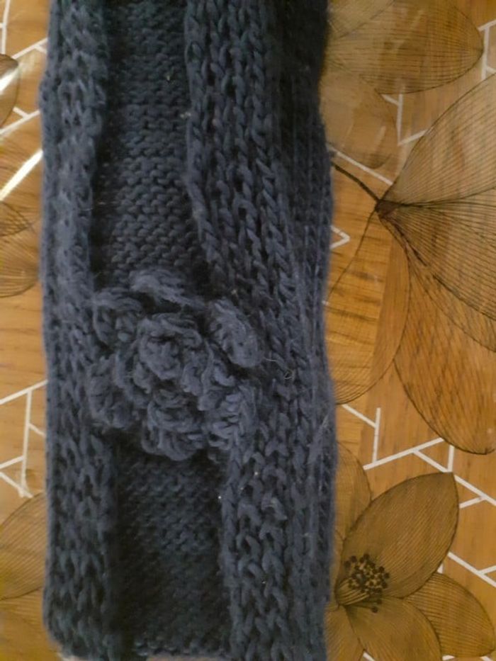 Écharpe femme Motifs mailles et fleurs Matière acrylique Couleur bleu marine Dimensions approximative 75cm de long et 14cm de large En très bon état