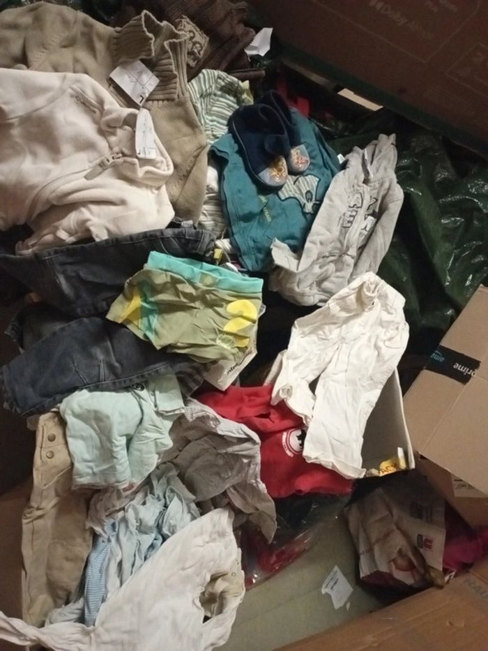 A saisir ce lot : maillot, t shirts, chausson, gilets, jeans, chemises, bodies, chaussettes, ceinture ...