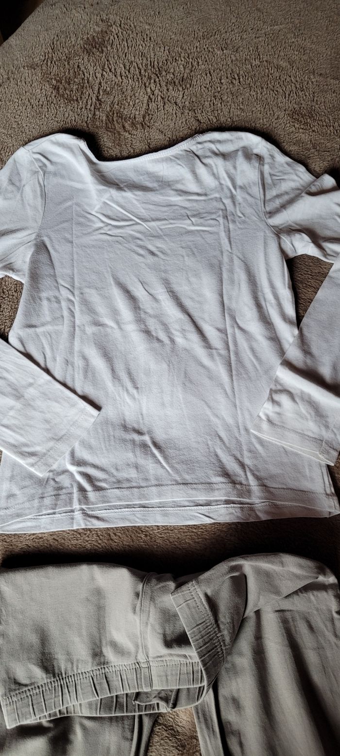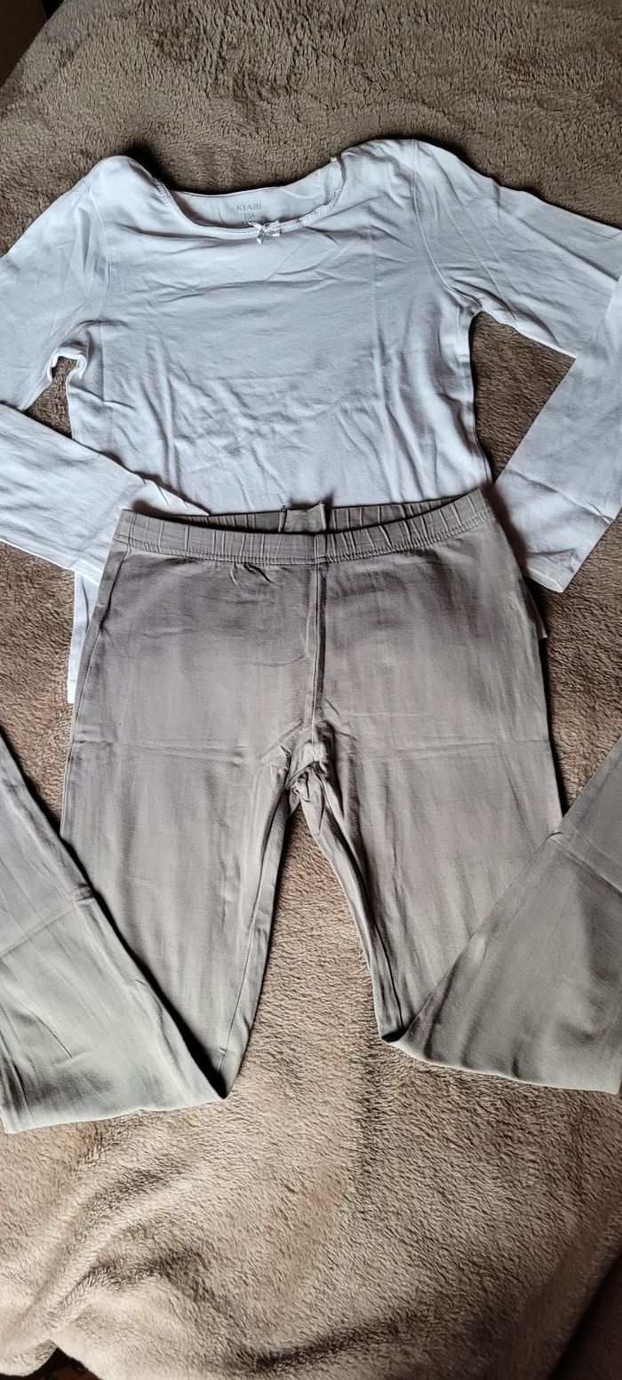 Pyjama 2 pièces Bas bilook gris Haut kiabi blanc 10 ans Défaut voir photo