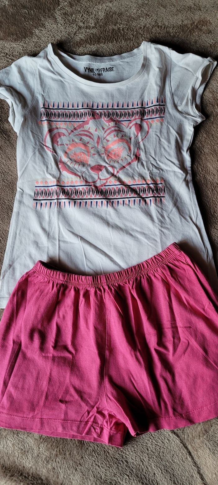 Pyjashort 2 pièces Rose et blanc 10 ans Vynil Fraise