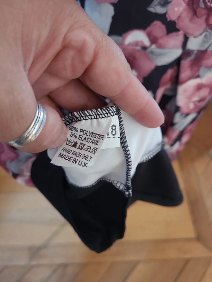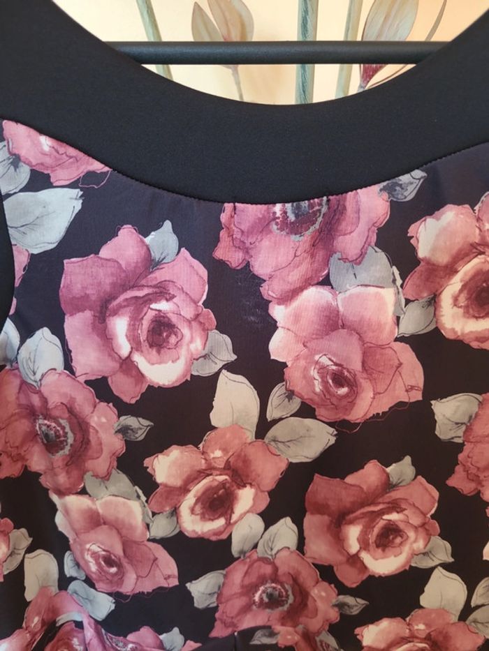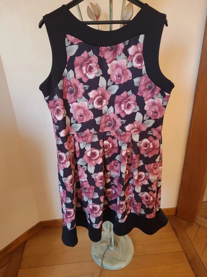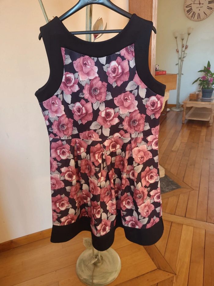 ⬇️mes autres annonces pour femme en taille 46 👉 #cg89femme46 😁 réductions activées des 2 articles ! une robe fleuri avec bande noir, elle est elasthane et n'a pas besoin de repassage. bon état (un défaut dans le dos - voir photo). Elle mesure 53 cm aux aisselles et 95 cm de longueur marque praslin, taille 46 #robe #robefleuri #elasthane #taille46 #praslin